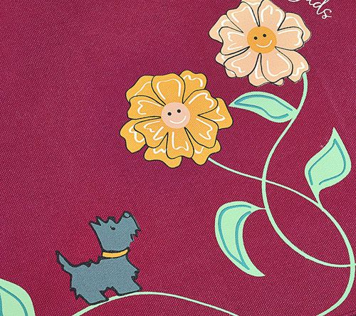 • Double handle, lock clasp closure, floral Scottie dog design, foil print logo, goldtone hardware