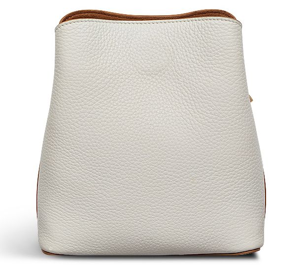 • Adjustable crossbody strap, zip top closure