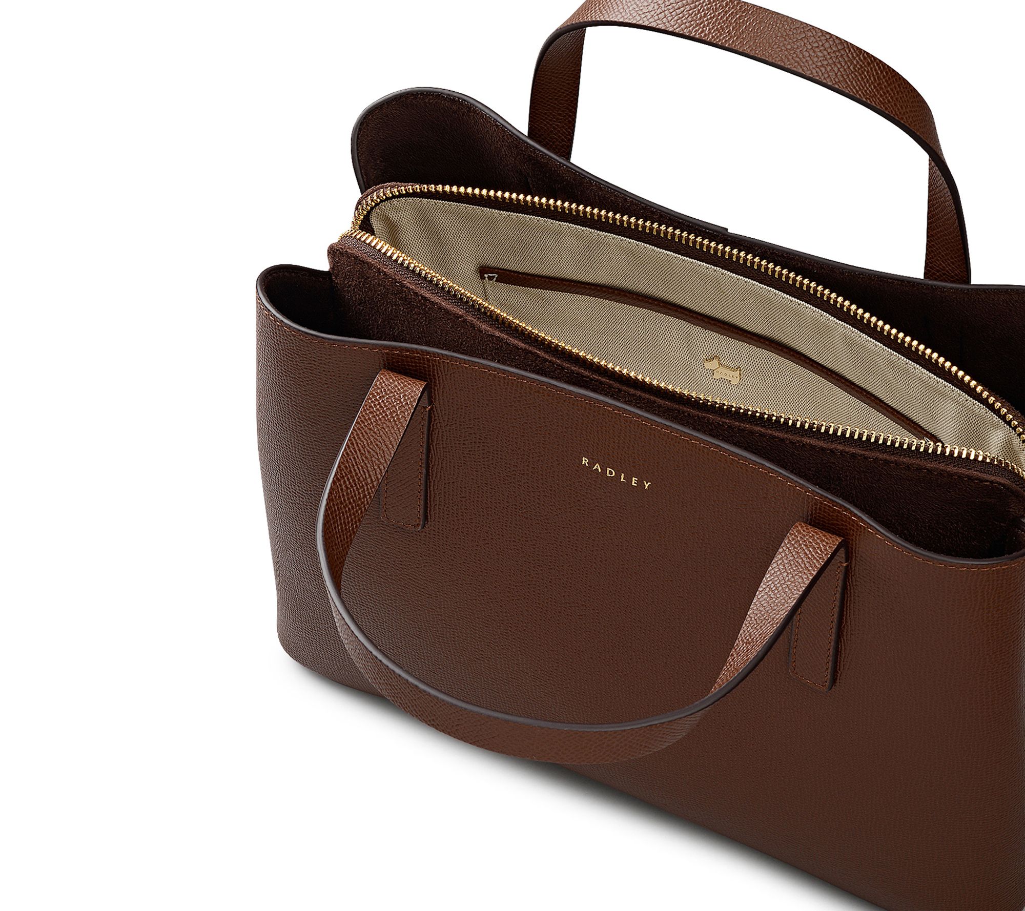 Take on every day in style with the Medium Zip Leather Satchel, featuring textured grain-embossed leather and organized compartments for essentials. Whether carried by the grab handles to lunch or worn crossbody for busy afternoons, this satchel makes transitioning from work to weekend effortless. From RADLEY London.