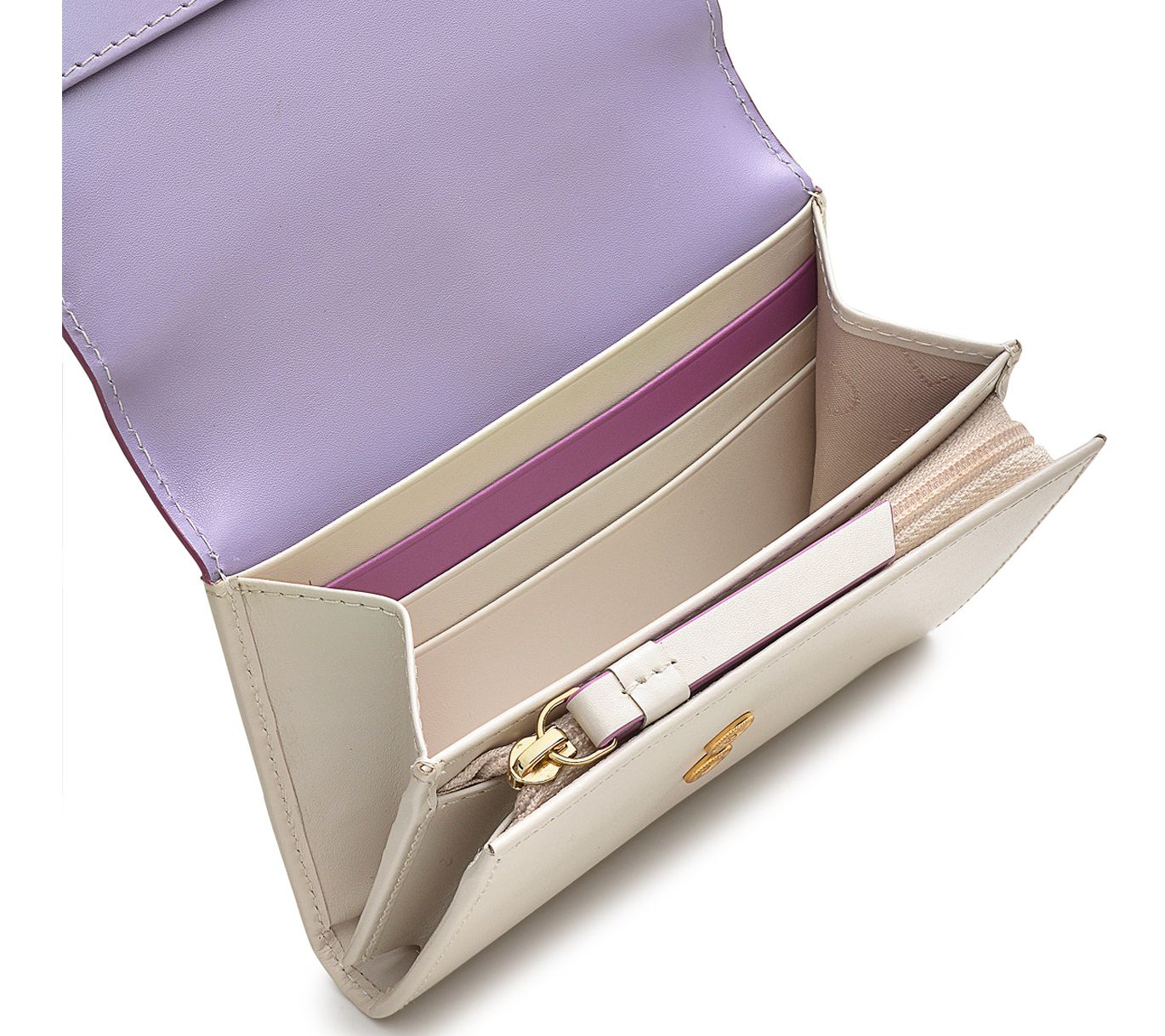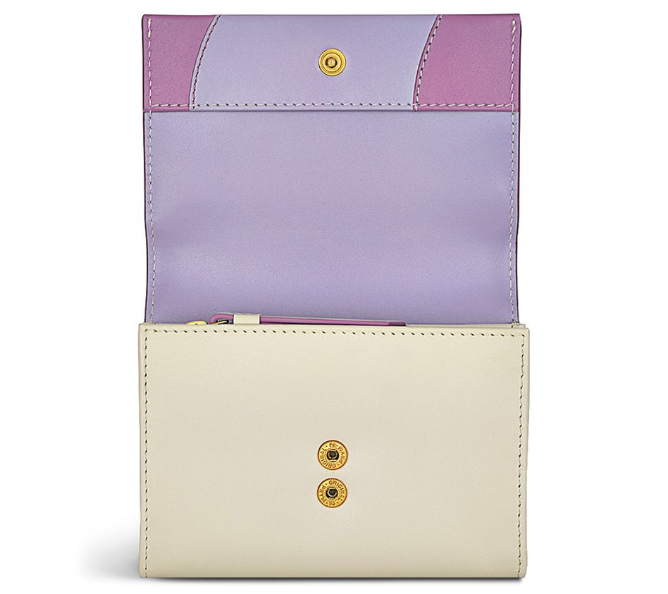 • Lined interior, 10 card slots, one note compartment, two slip pockets, central zip coin pocket