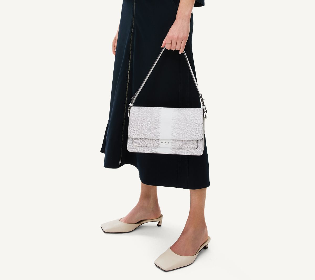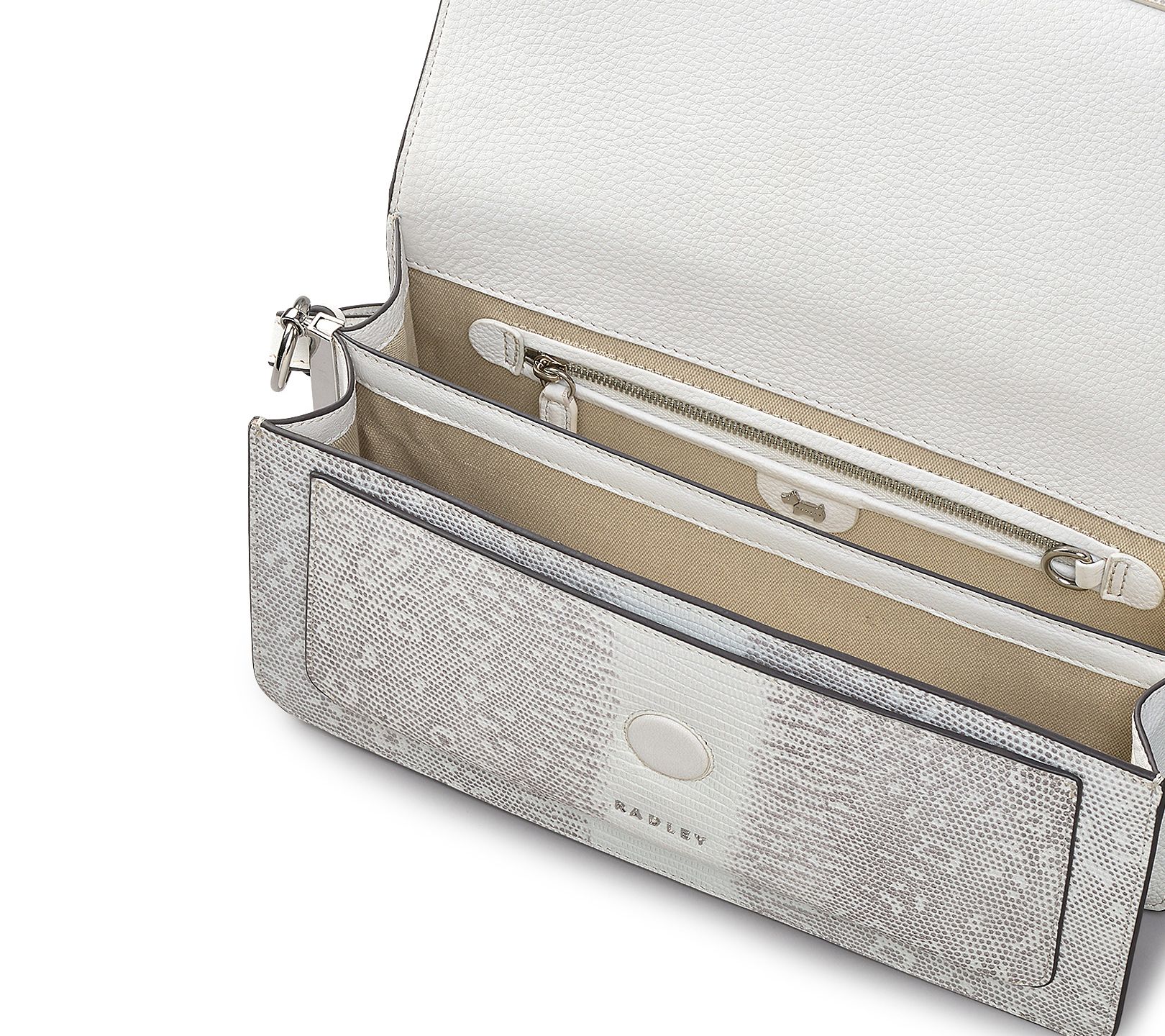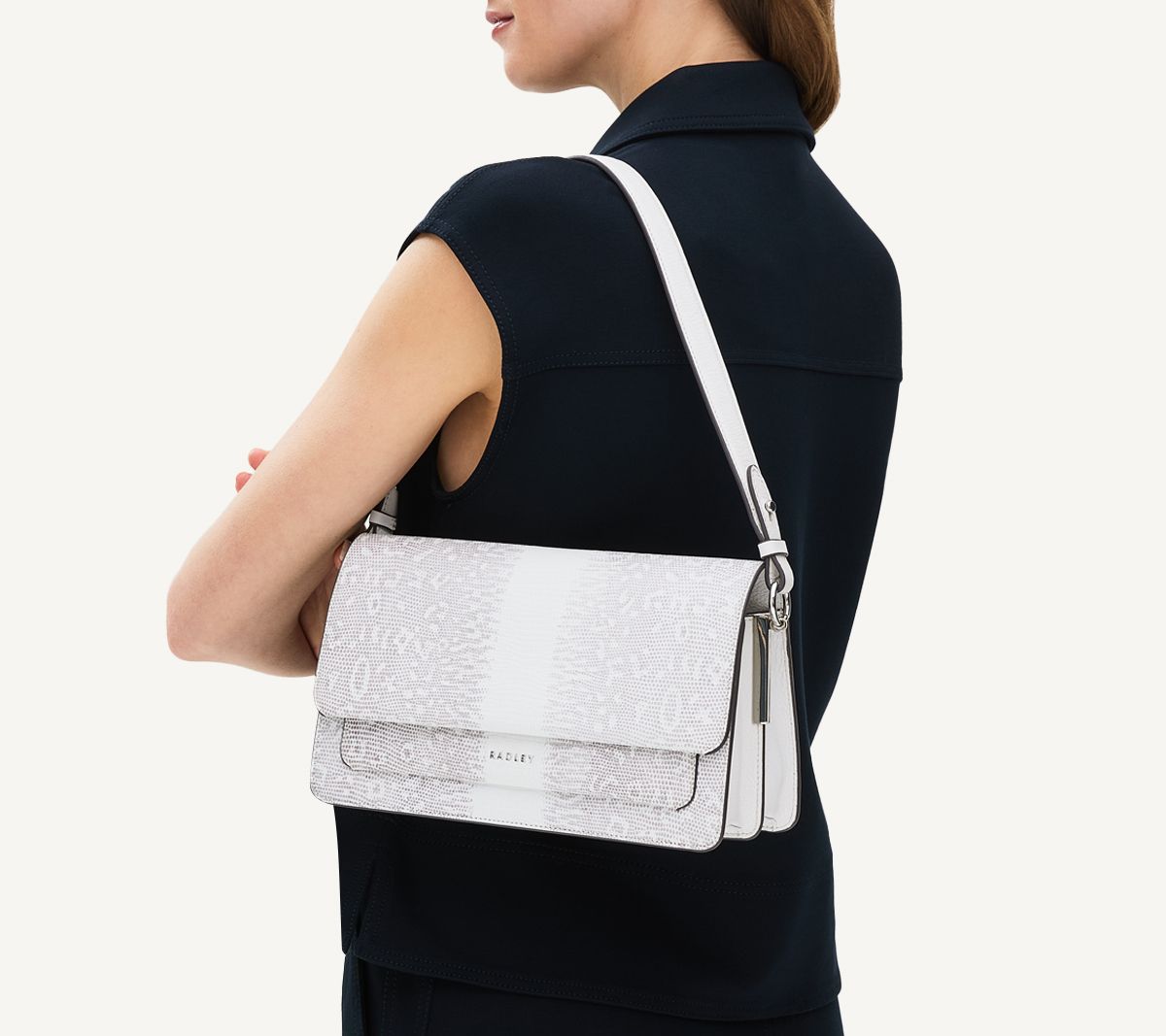 Transition seamlessly from day to night with the Radley Leather Lane shoulder bag. Reimagined in textured lizard-effect leather, this flapover bag boasts a structured shape and versatile design. The detachable webbing strap adds a casual touch for your daily outings. From Radley.