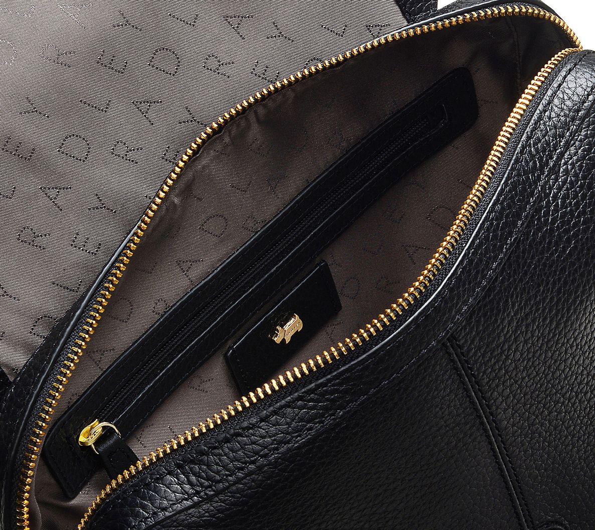 • Zip top closure with magnetic flap; detachable Scottie dog key fob; exterior zip pockets