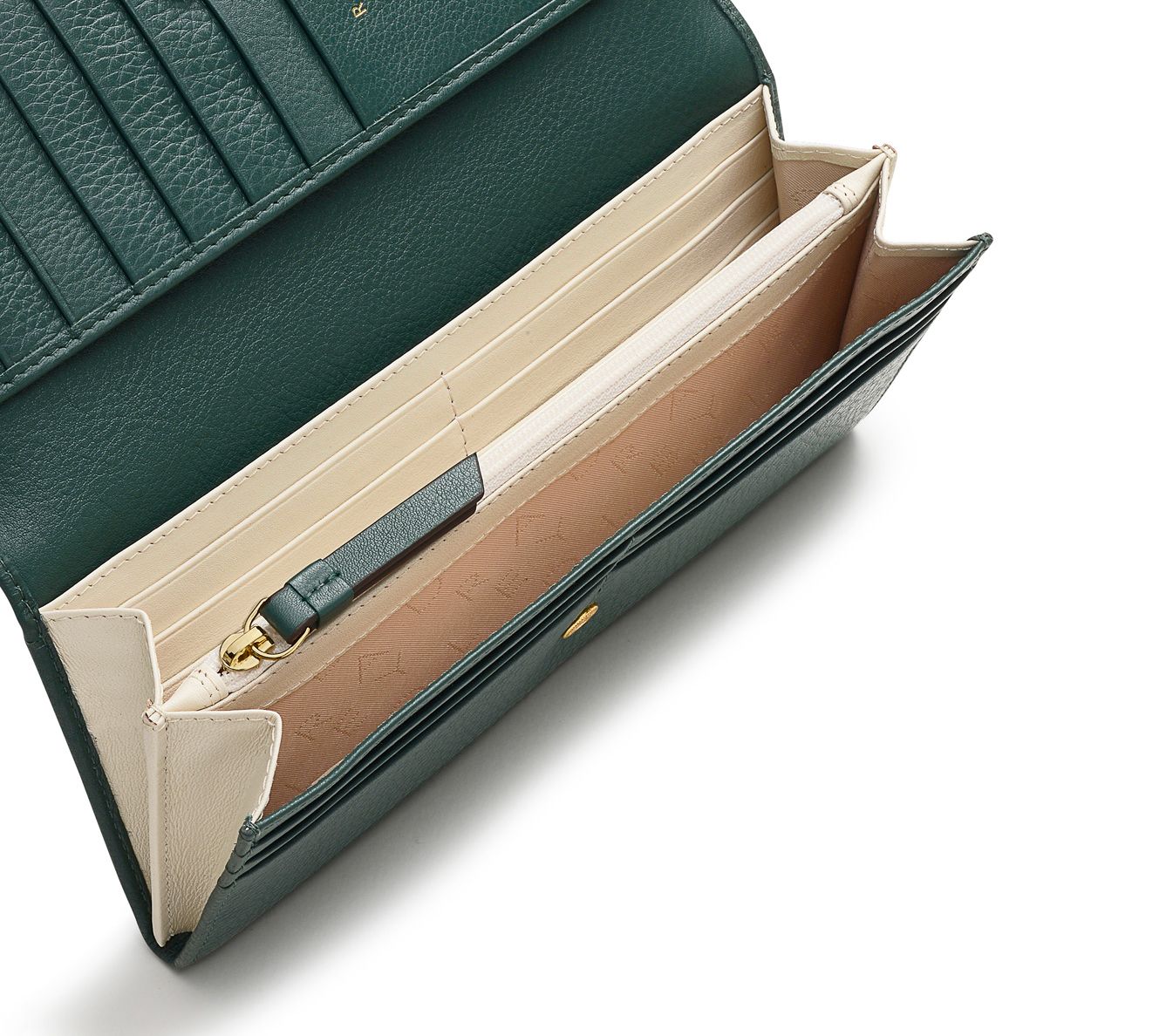 • Lined interior, central zip coin pocket, two internal slip pockets