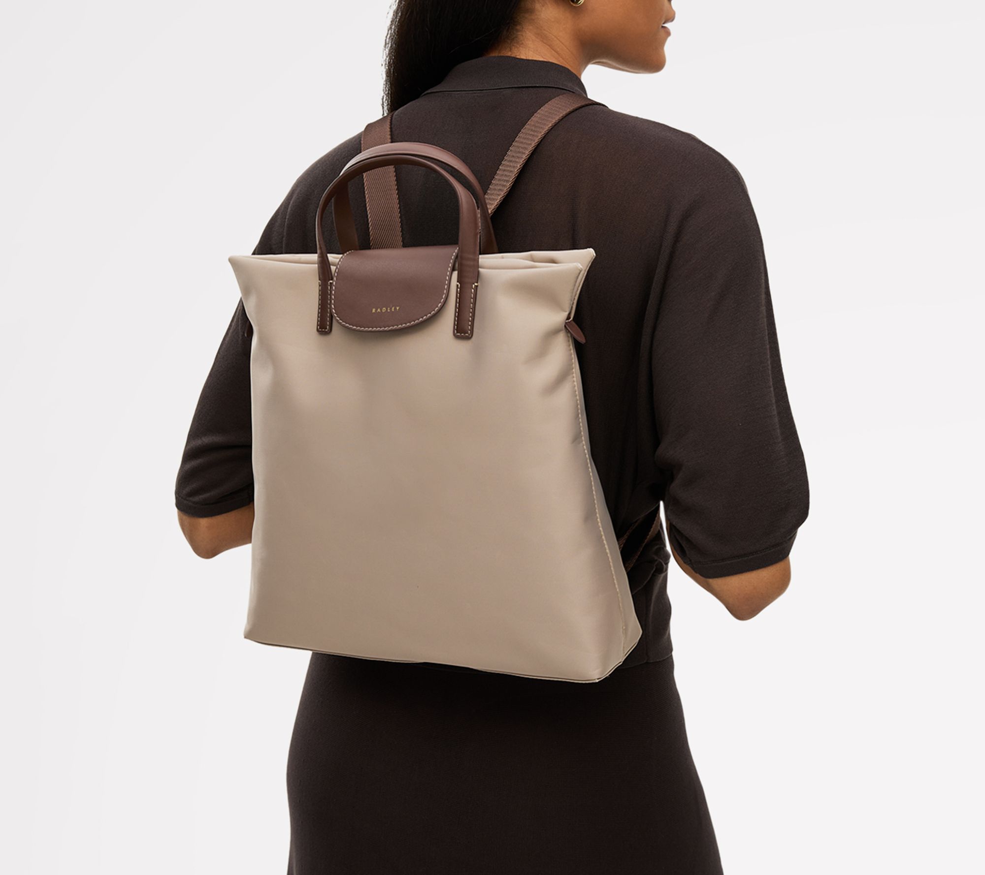 Running errands or heading to the office, this versatile backpack keeps essentials close while allowing hands-free ease. Its square silhouette, padded grab handle, and adjustable webbing straps offer comfort whether you're navigating busy streets or meeting friends downtown. From RADLEY London.