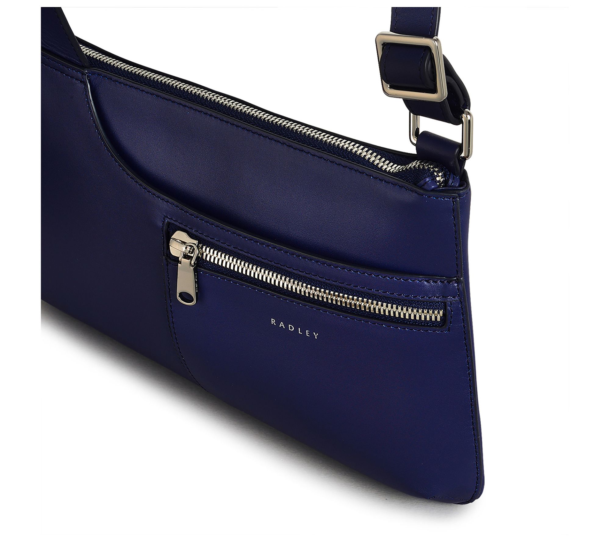 • Curved front slip pocket, zipped front pocket, adjustable tapered strap, zip fastening