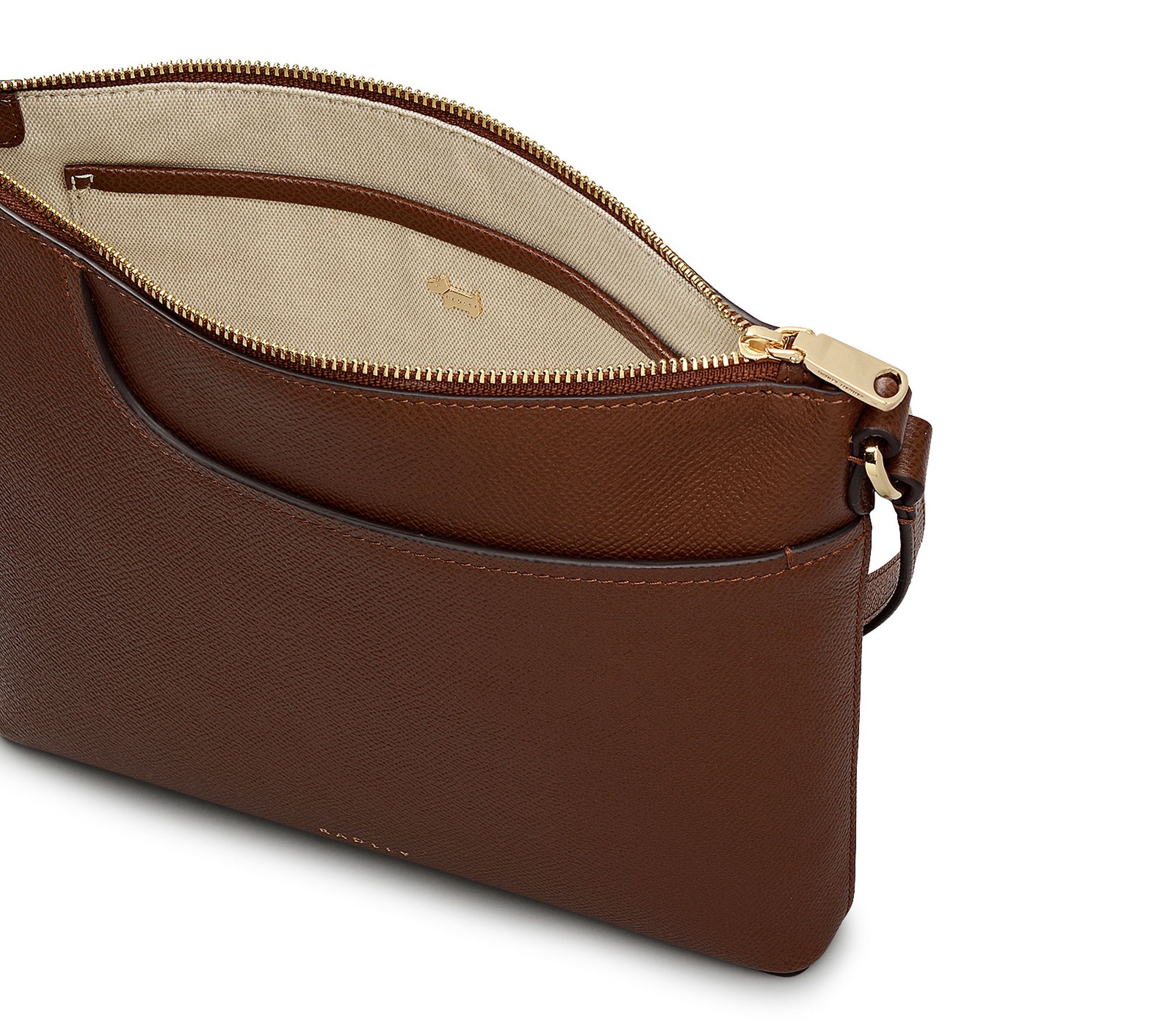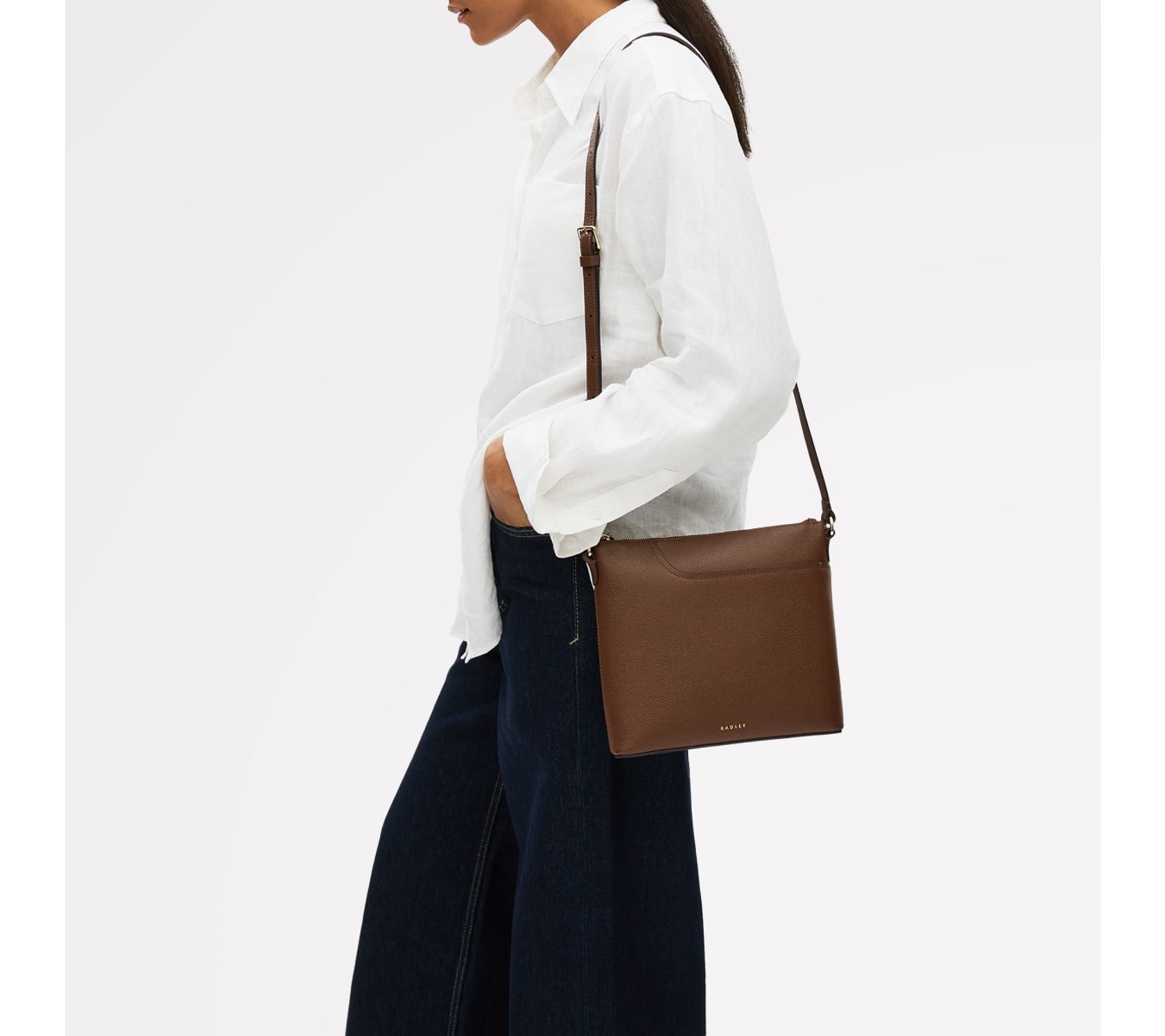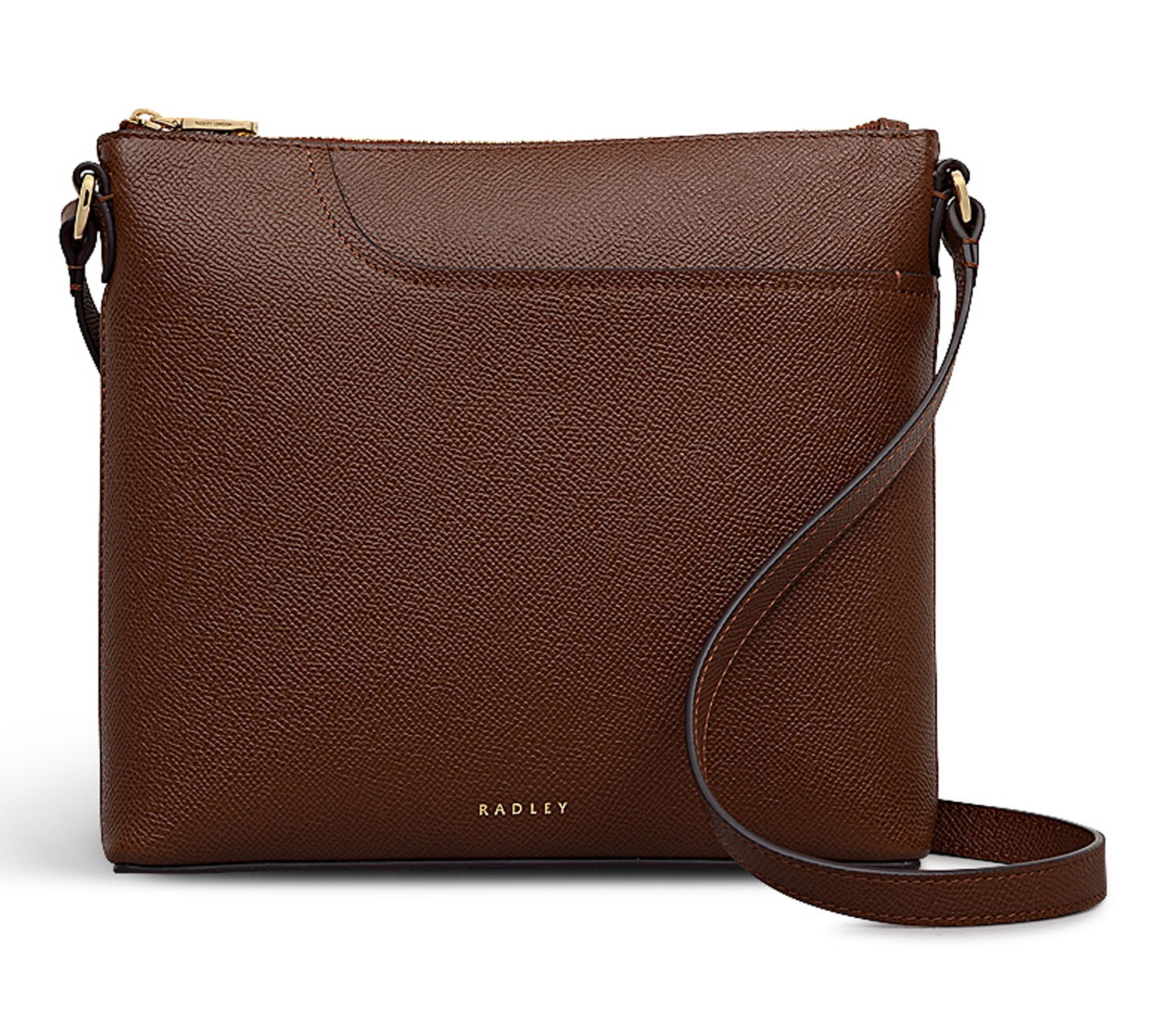 Inspired by an archived RADLEY London favorite, this small leather crossbody brings timeless charm wherever your schedule takes you, whether you're sightseeing or out with friends. Its slim profile and signature curved slip pocket keep your essentials right at hand, while goldtone hardware and a detachable branded tag add stylish flair. From RADLEY London.