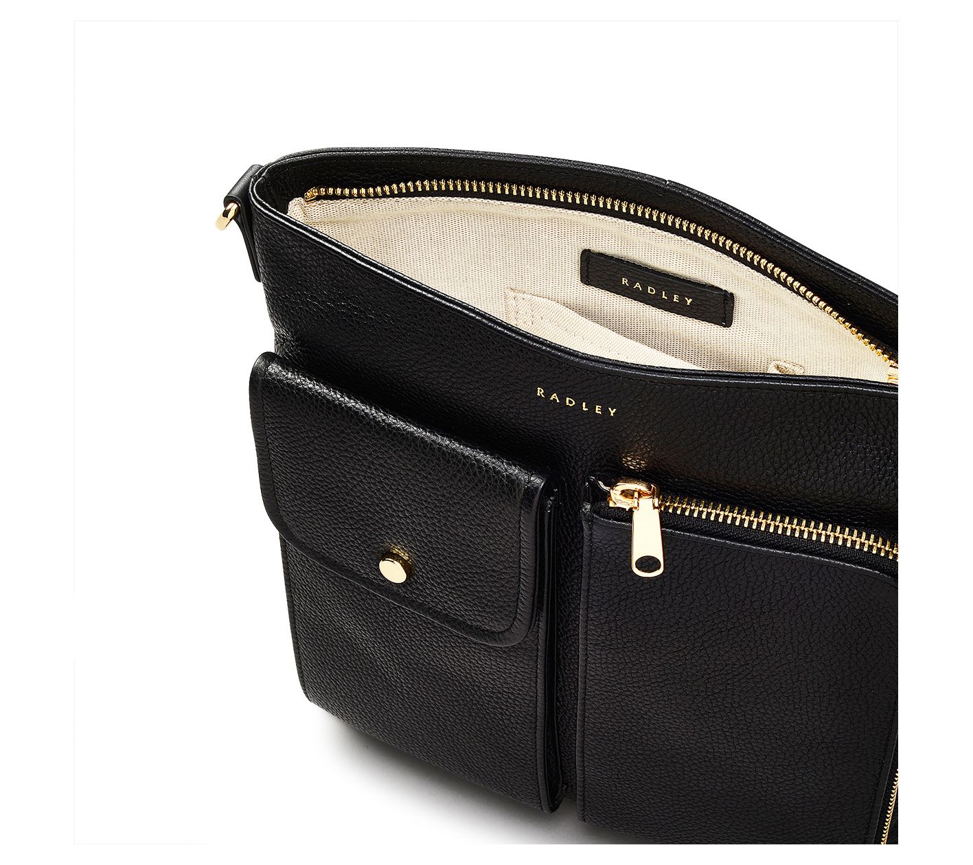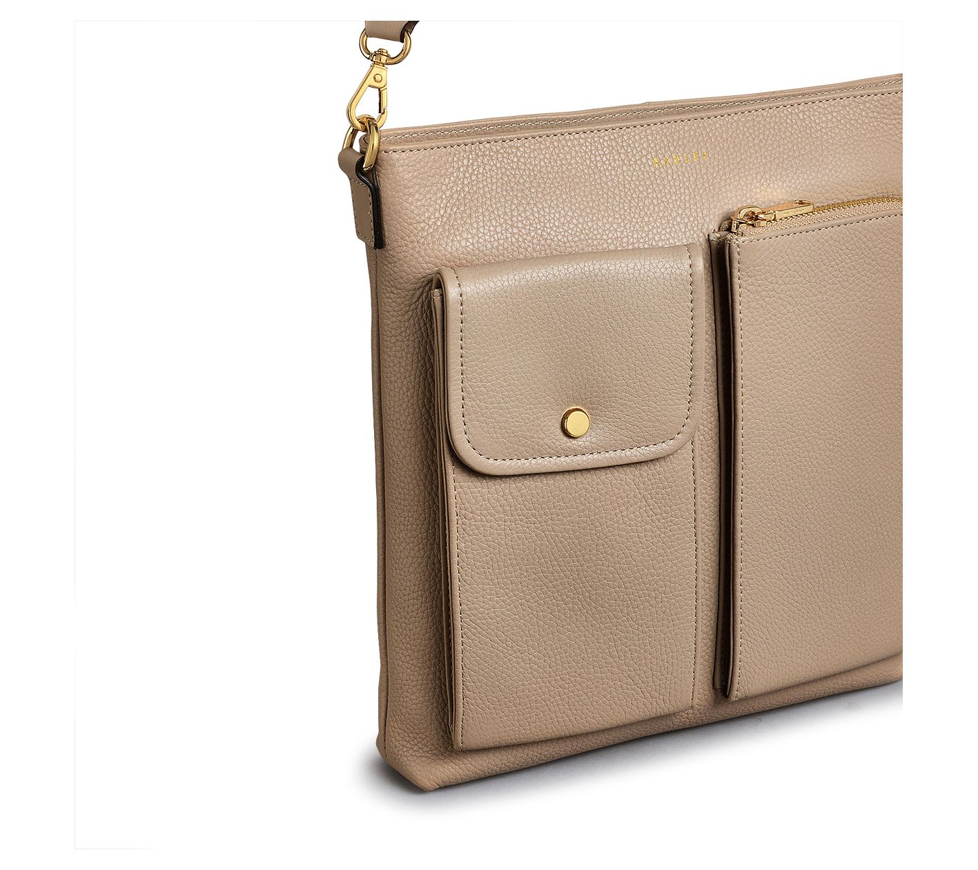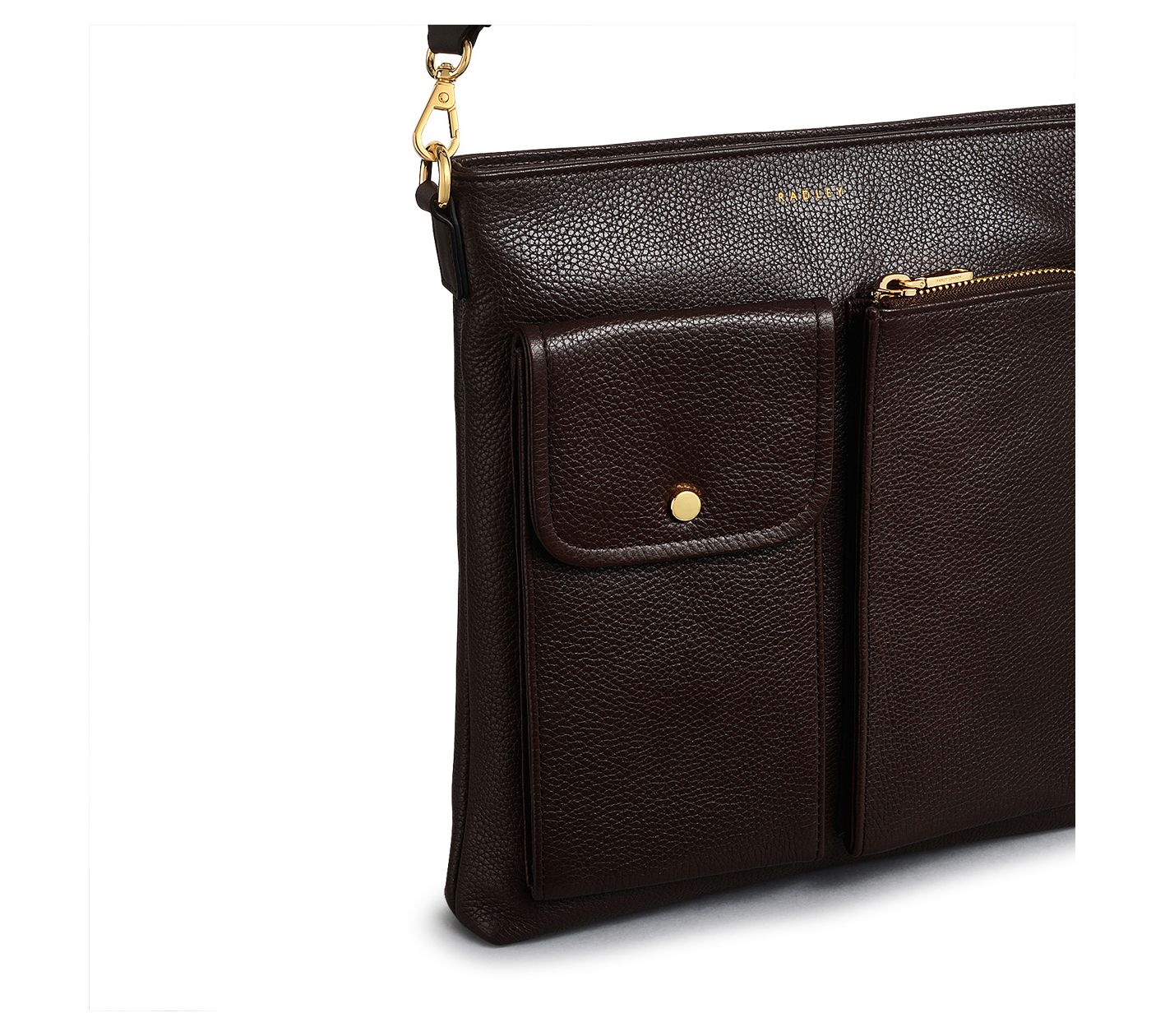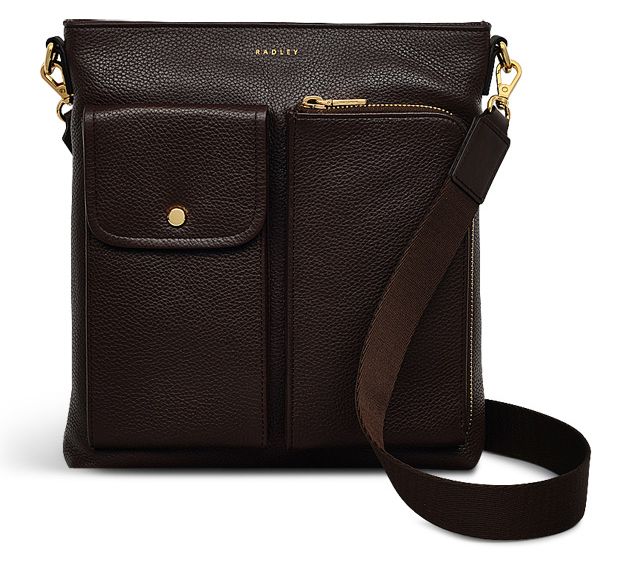 Take on your day with the Radley Selby Crescent crossbody bag, a perfect blend of style and function. Made with grained leather and sporting a utility-inspired design, this bag has a casual and sporty feel, thanks to the adjustable webbing strap and multiple front patch pockets. Ideal for keeping essentials organized, it features interior card slots, a secure zip closure, and ample inside space. From Radley.