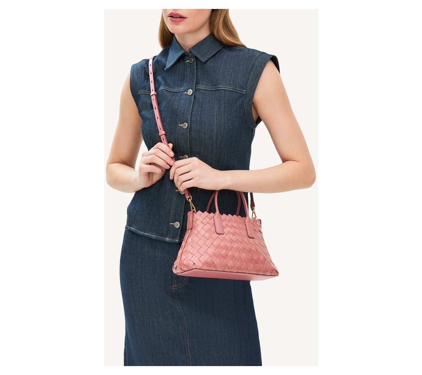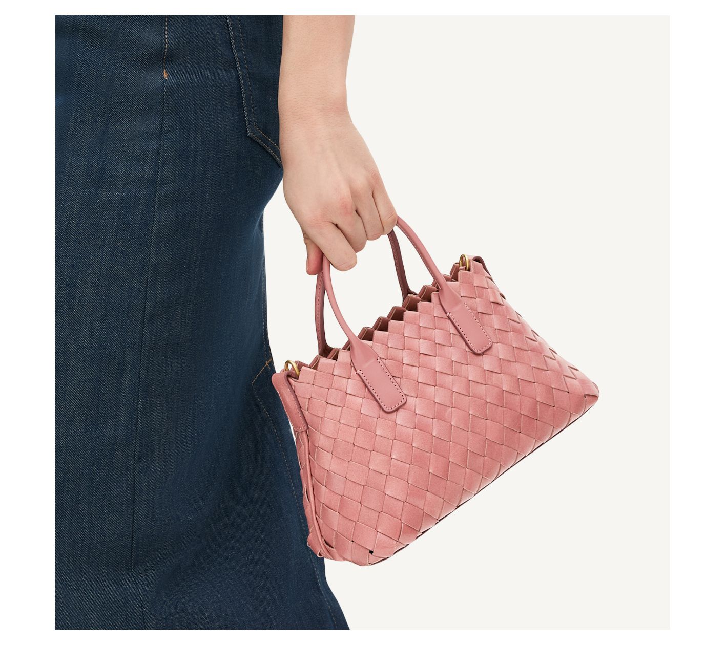 • Pink: goldtone hardware; Stone: rhodium hardware