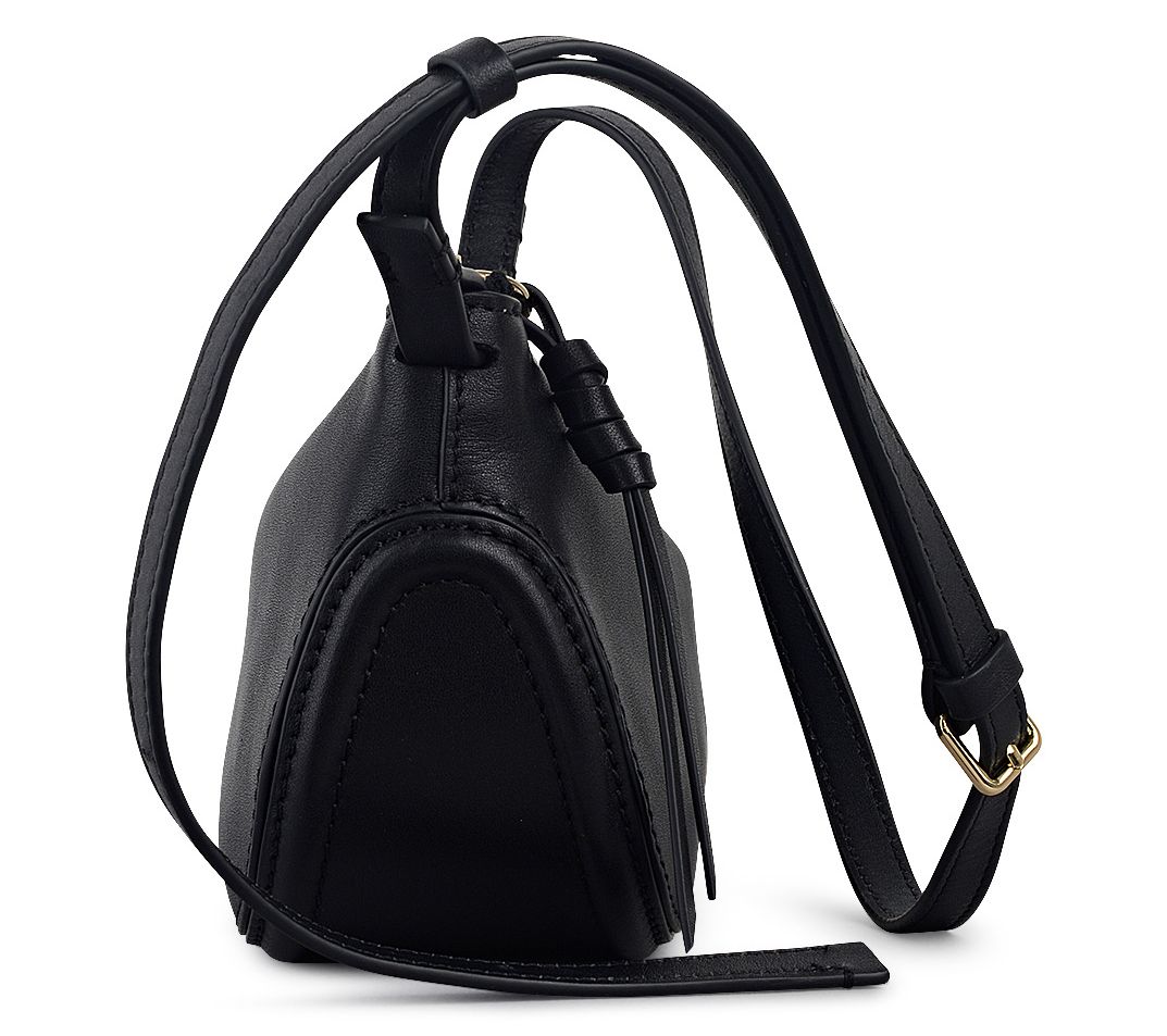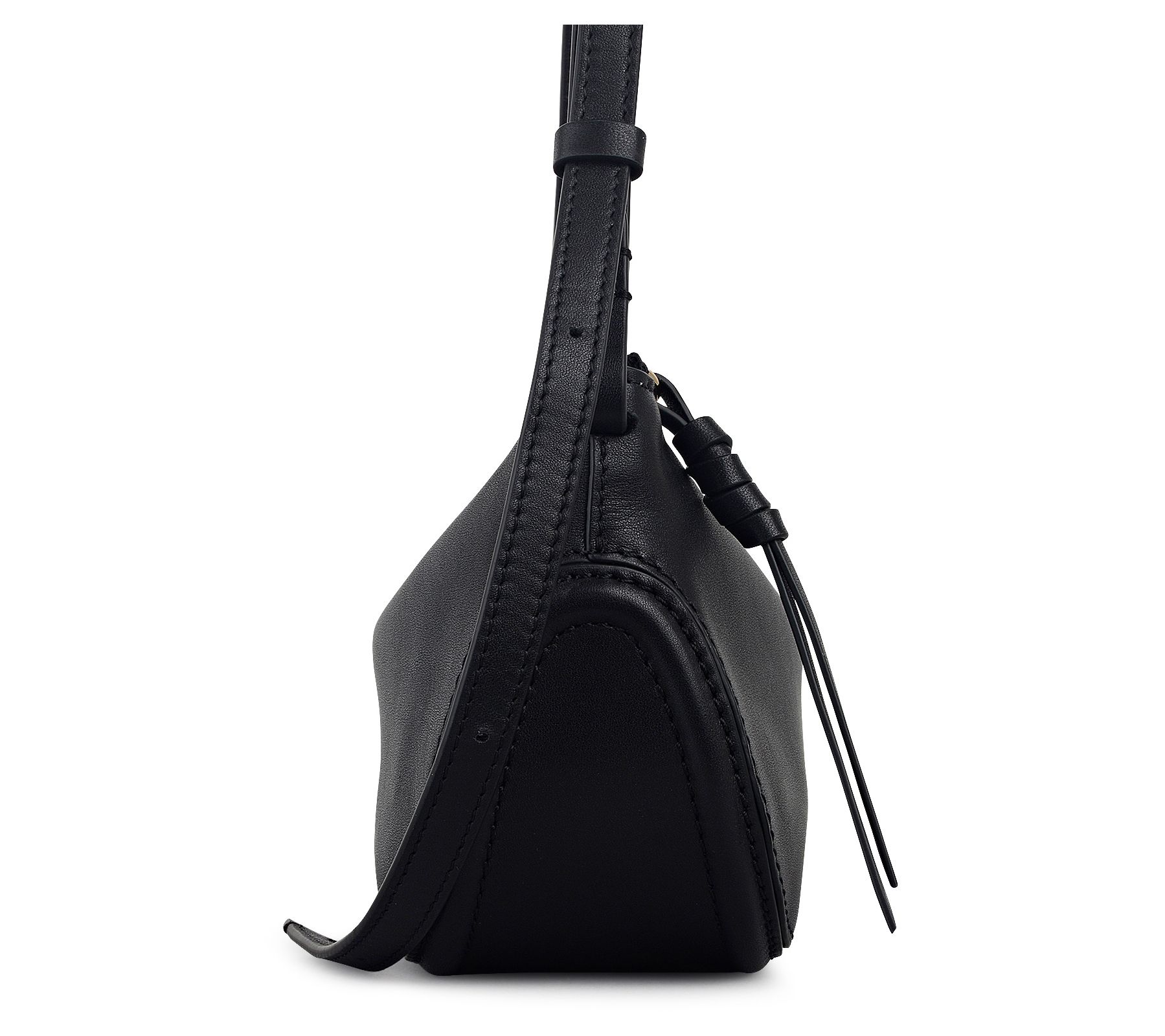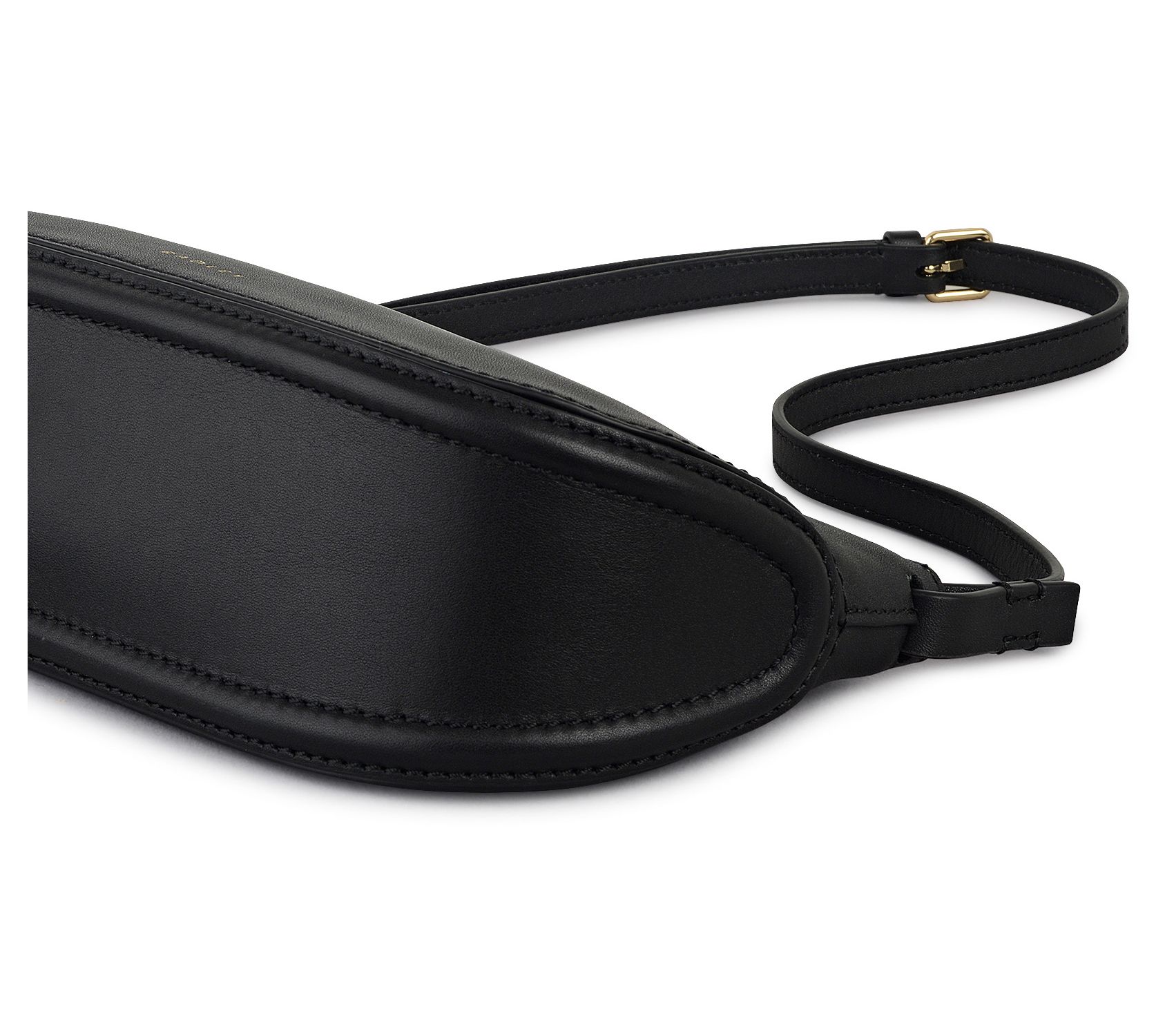 • Zip top closure, single slim adjustable strap with stitched tack details, chunky zip with hand-knotted leather puller, foil logo, ski-shaped trapunto padded base, painted cut edges