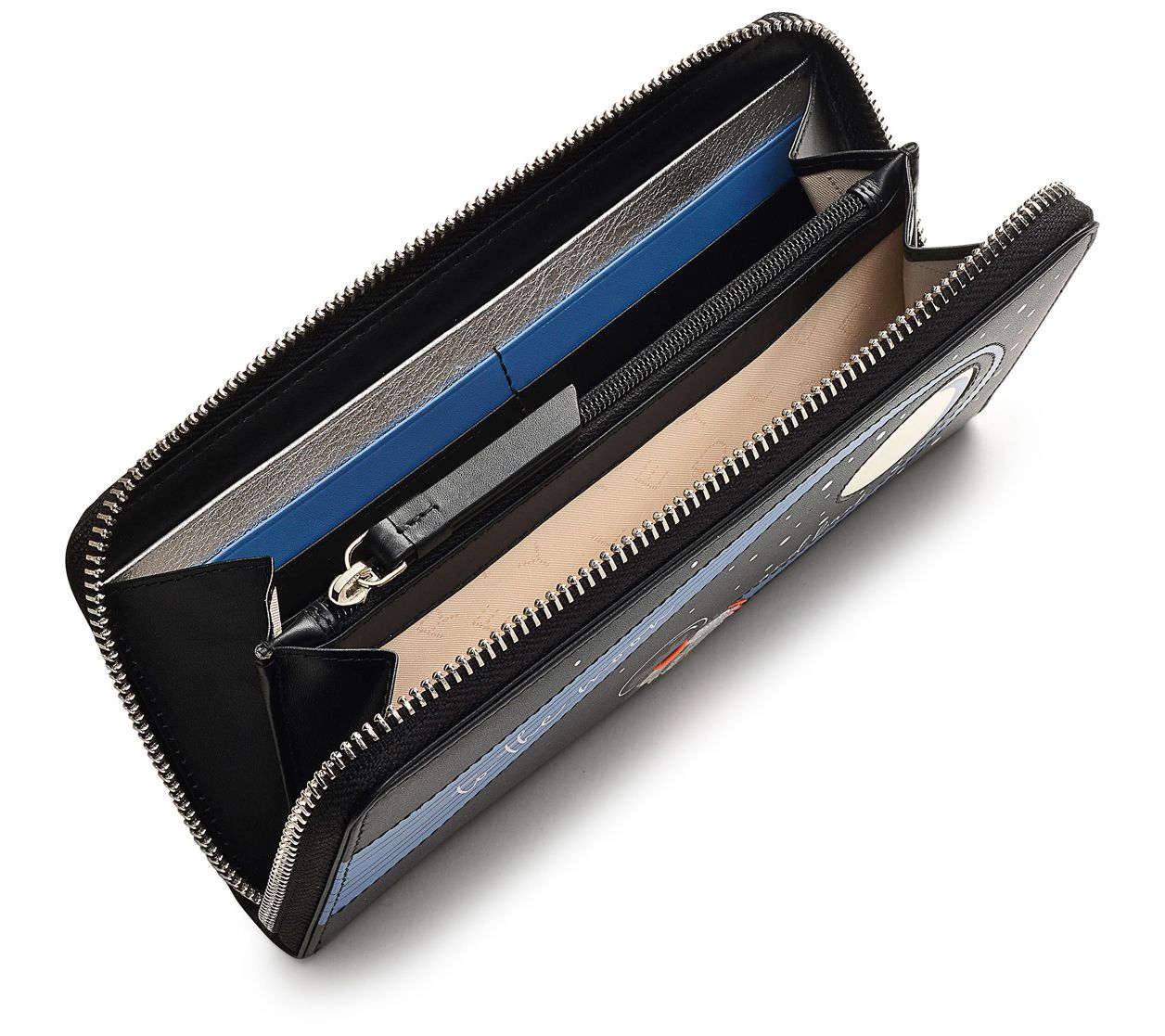 Tidy cards, currency, and other small essentials with ease using this large zip-around wallet decorated with a print that's out of this world. From RADLEY London.