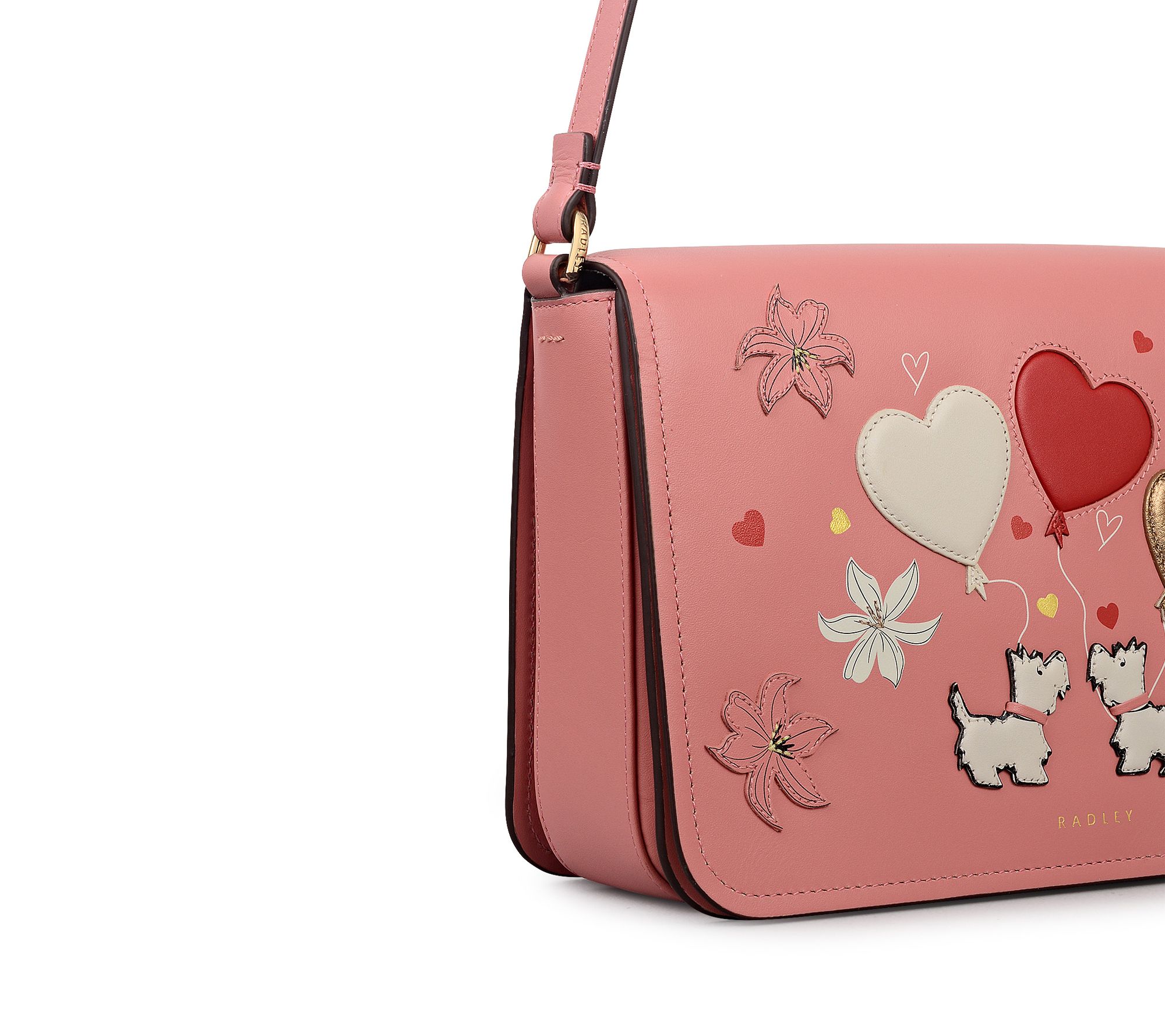 Let your style shine every day with this crossbody, complete with whimsical Scotties and flirty hearts and flowers, adding a touch of playful personality to any outfit. From busy mornings to a night out, the comfortable adjustable strap and practical interior slip pocket keep your essentials organized while you go hands-free. From Radley.