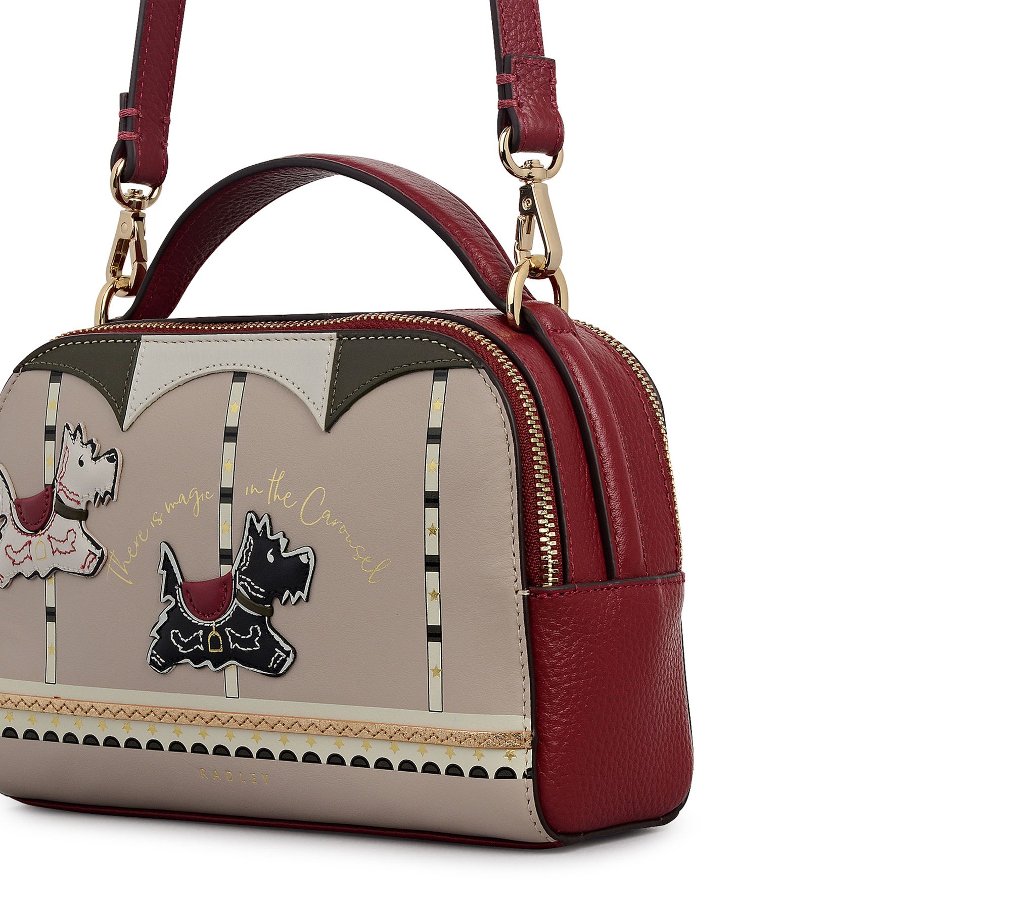 Let the whimsical Magic Carousel crossbody add a playful touch to your look, whether you're dashing to brunch or exploring a new city. With eye-catching Scottie applique and intricate craft detailing, this compact leather bag brings personality and style to every adventure, while two zipped sections offer space for essentials. From Radley.