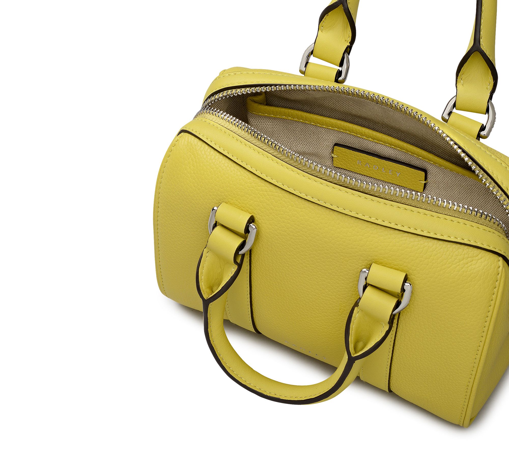 A bowling-inspired satchel with contrast stitching and refined structure brings a dash of sophistication to your everyday routine. Smooth calf leather and a detachable tassel accent offer a polished look, while the spacious, canvas-lined interior makes it easy to organize essentials for work, brunch, or errands. From Radley.