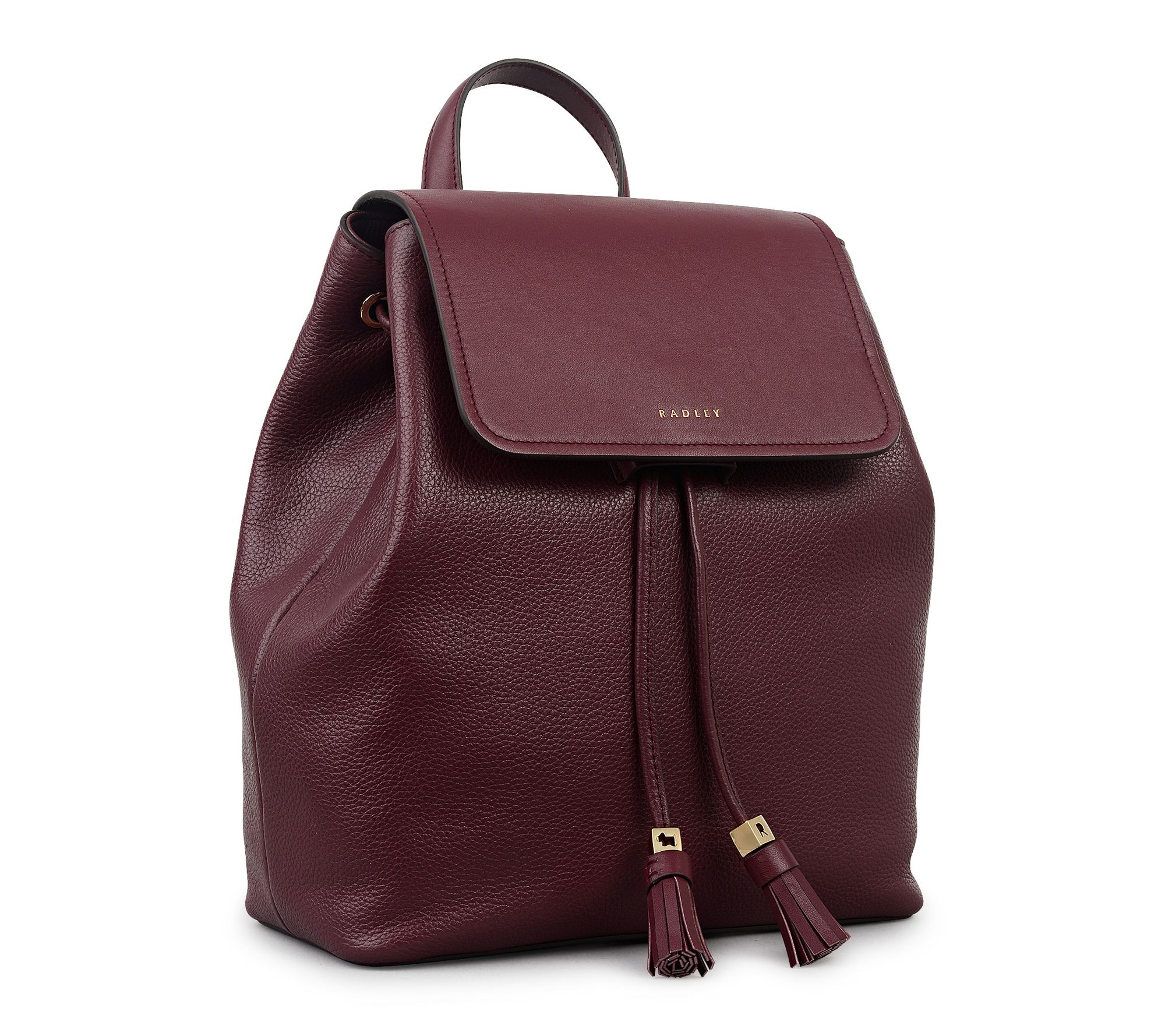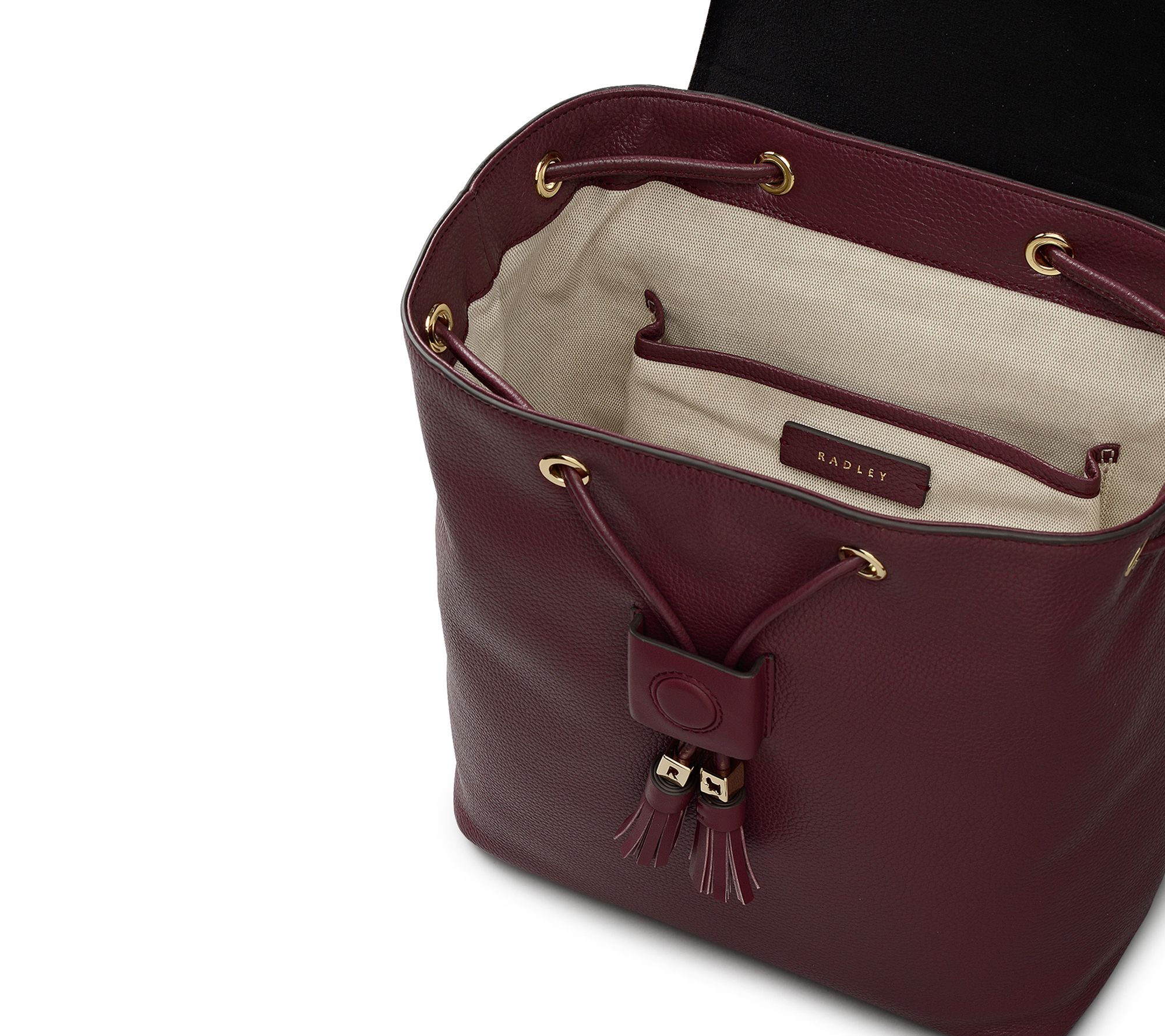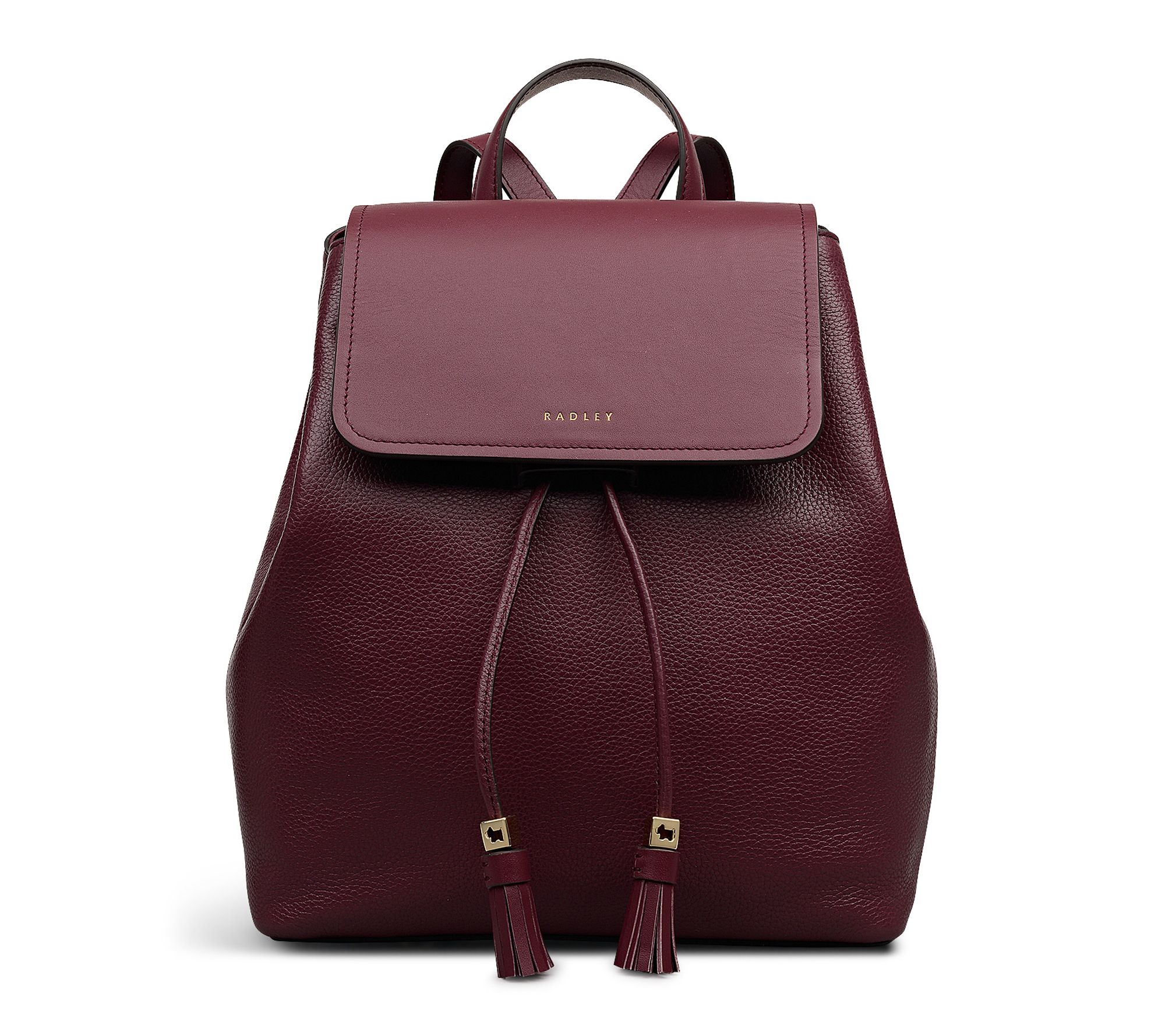 A sculptural silhouette and refined details create a stylish companion for days on the move. This leather backpack keeps essentials close with a concealed drawstring and zip closure, while adjustable straps and a structured handle offer versatile carrying options from morning errands to afternoon meetups. From Radley.