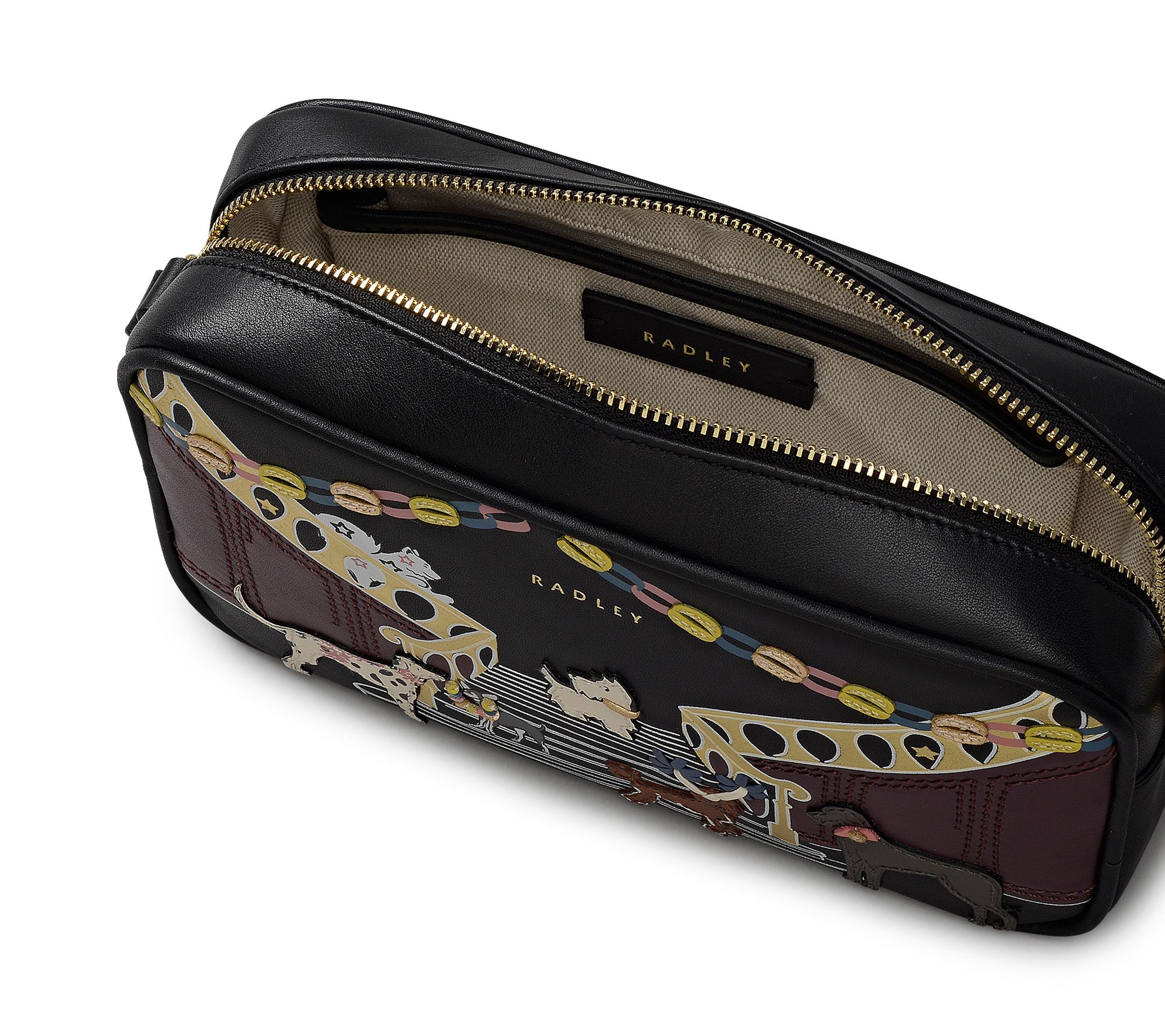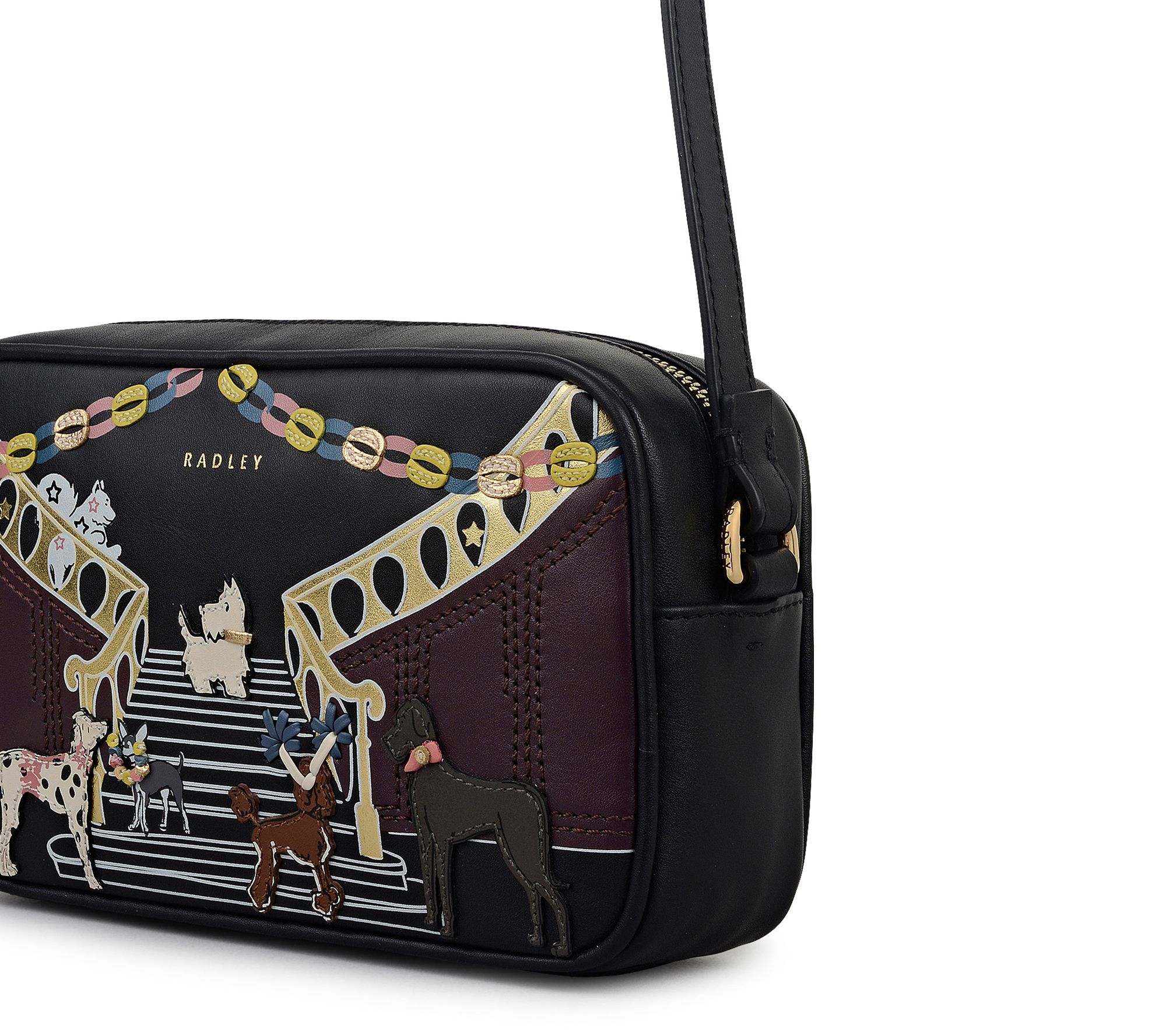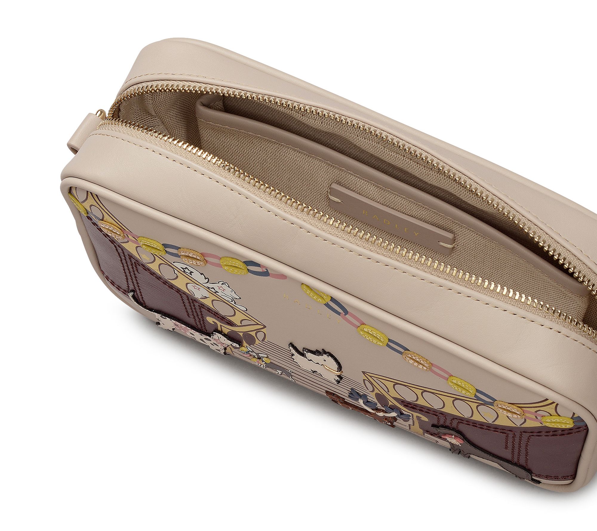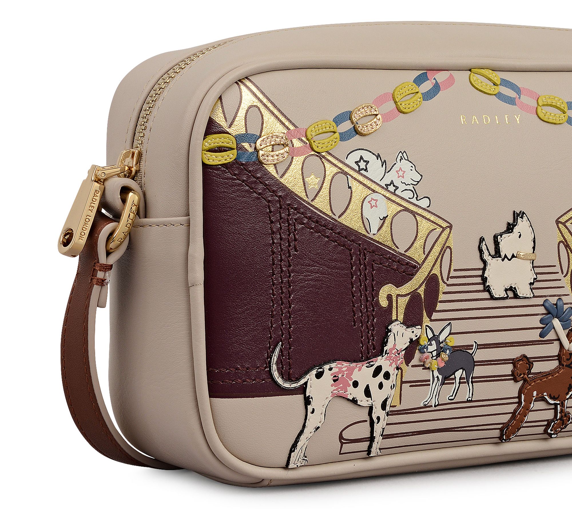 Whether you're heading out for brunch with friends or exploring a new city, this small leather crossbody keeps your essentials close at hand while adding a playful touch to your outfit. The zip-top closure offers easy access, and the charming Party Pals design brings a little whimsy to every adventure. From Radley.
