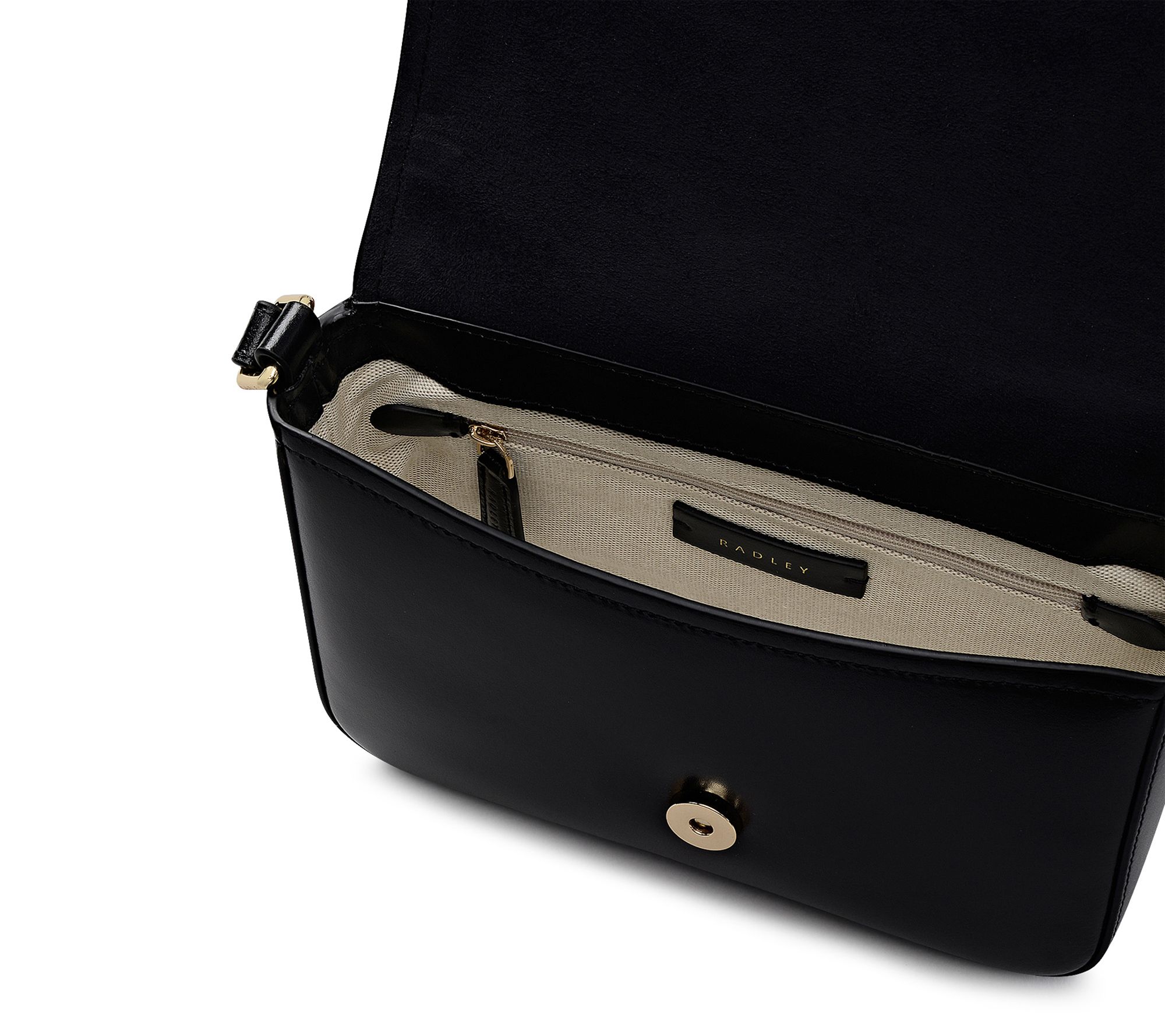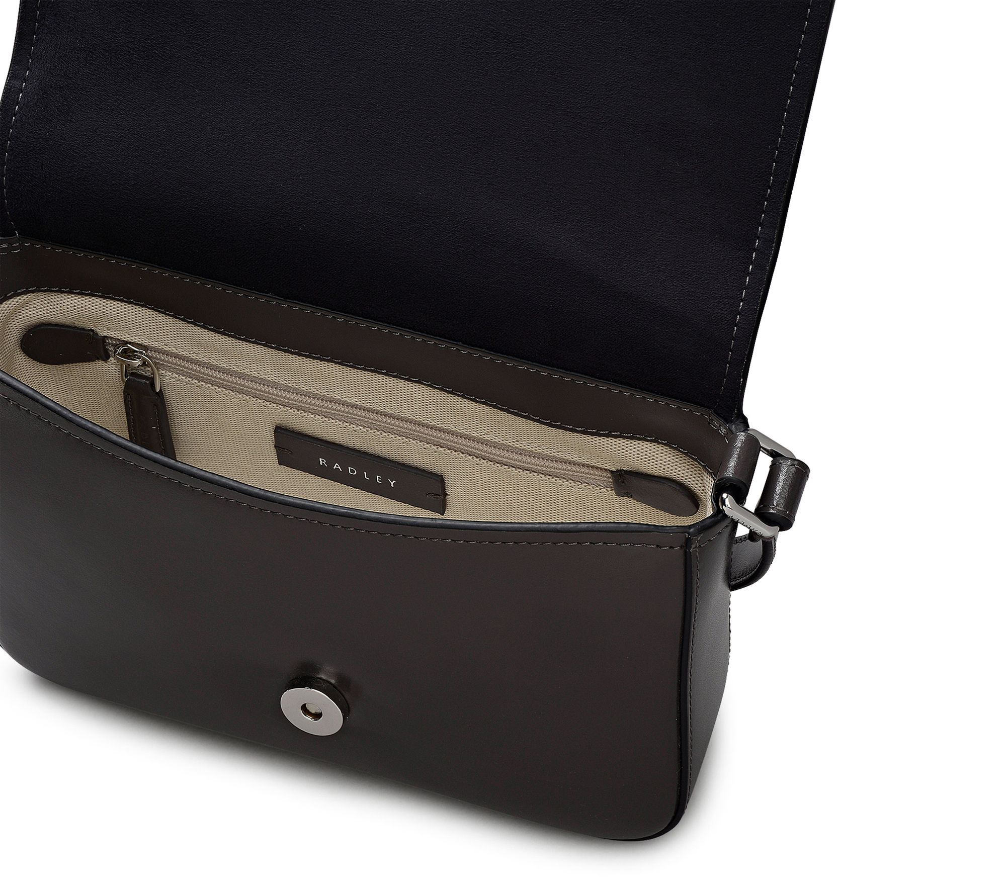 Branded metal puller and signature Radley dog stud detail on exterior