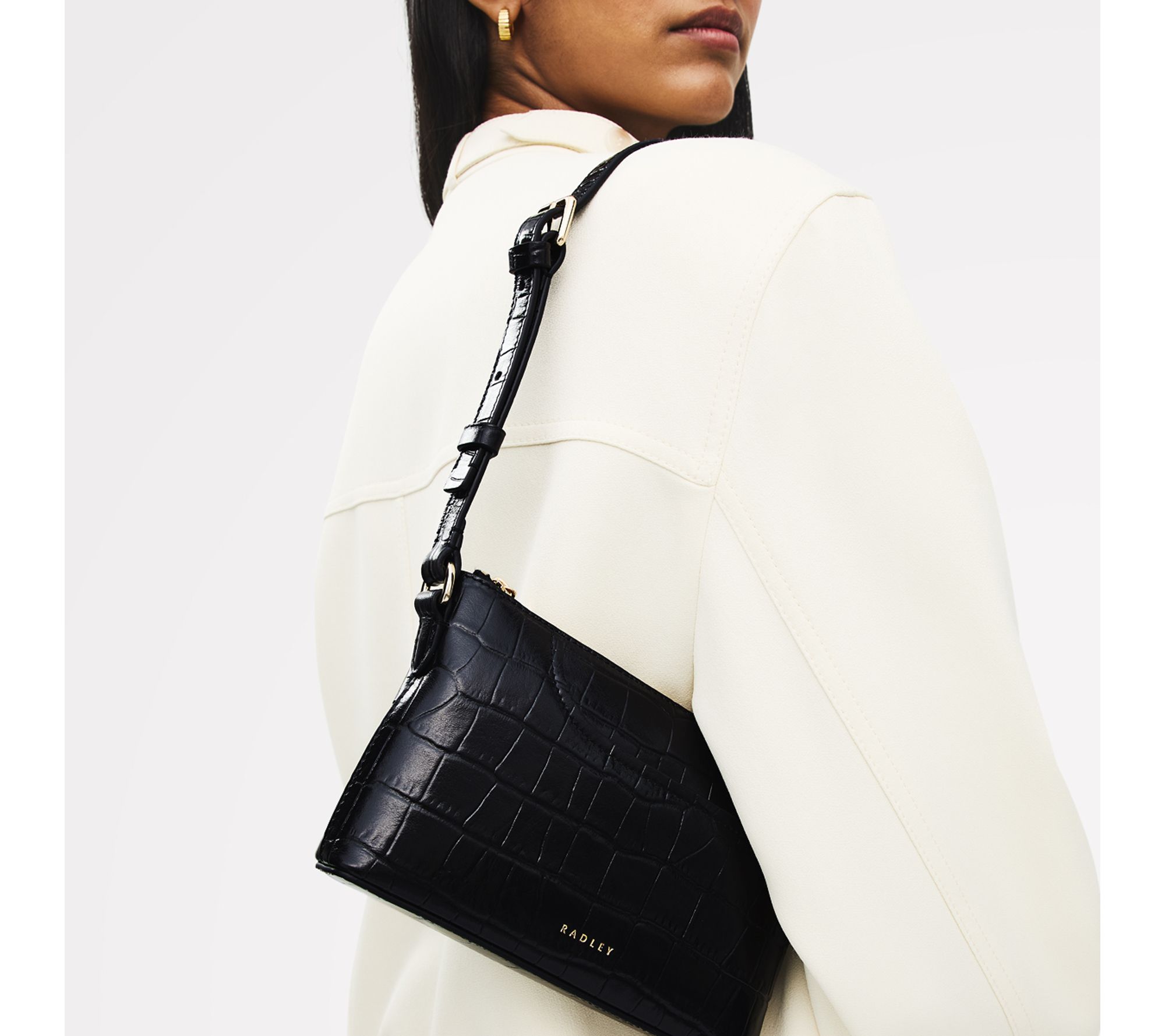 Transition seamlessly from day to night with this mini shoulder bag, crafted in textured croc-embossed leather and finished with a stylish branded keyring and fob. The slim silhouette and signature curved front slip pocket keep essentials organized, while the adjustable strap offers comfort for errands, brunch, or evenings out. From Radley.