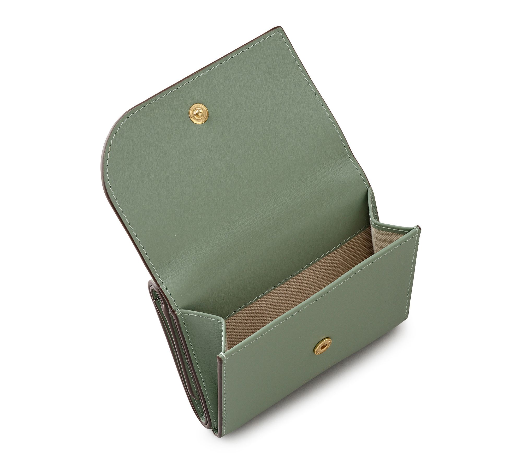• Smooth leather exterior with curved flap and snap closure; goldtone branded hardware; foil logo