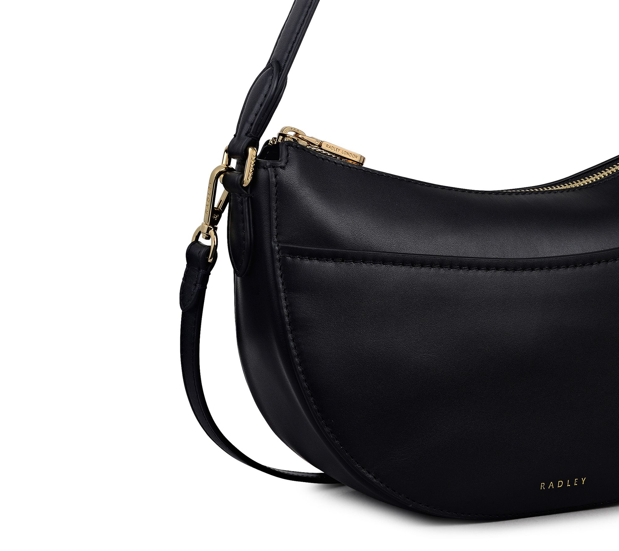For days filled with errands or evenings out, this sleek leather shoulder bag brings refined functionality to your routine. The elegantly curved silhouette offers easy organization with its handy front and interior slip pockets, while the detachable crossbody strap adapts effortlessly to your plans. From Radley London.