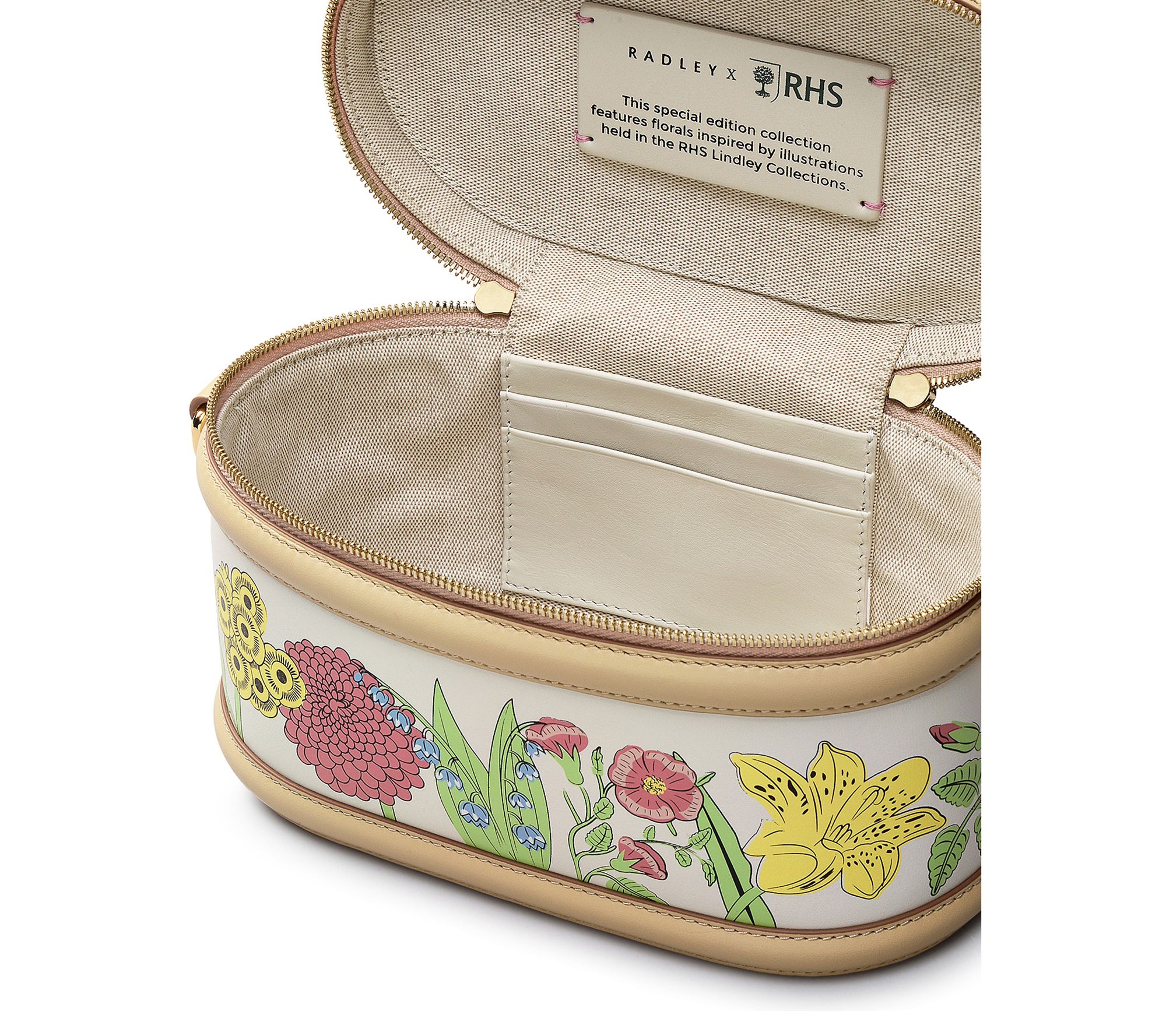 Get ready to turn heads with this crossbody bag from Radley, thoughtfully designed in collaboration with the Royal Horticultural Society. Imagined with delicate floral prints and embossed details, its vanity case shape makes it an elegant choice for special occasions. With a versatile top handle and a detachable strap, you can effortlessly switch up your style. From Radley.