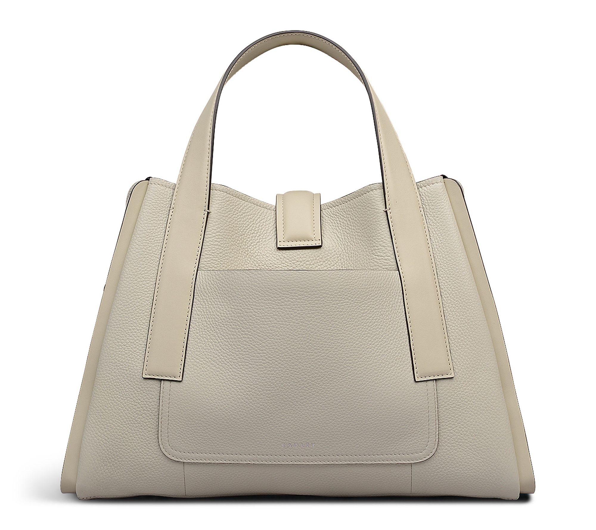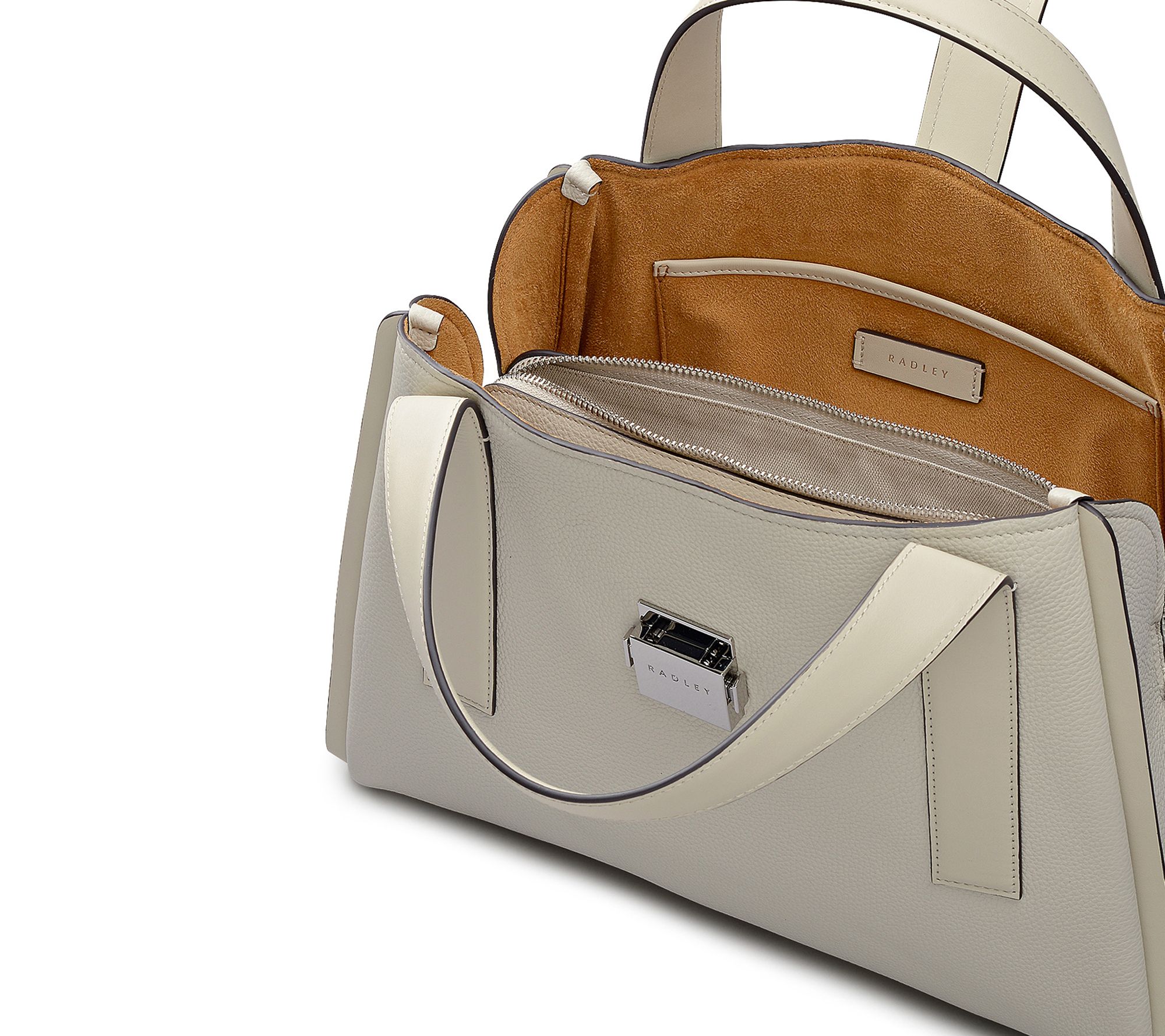 Organize your daily essentials with ease, thanks to this satchel's trio of spacious compartments and a central zipped section that keeps everything secure. Soft grain leather and smooth trims blend timeless elegance with modern function, while double grab handles and a detachable crossbody strap offer versatile carrying options for workdays or weekend outings. From Radley.