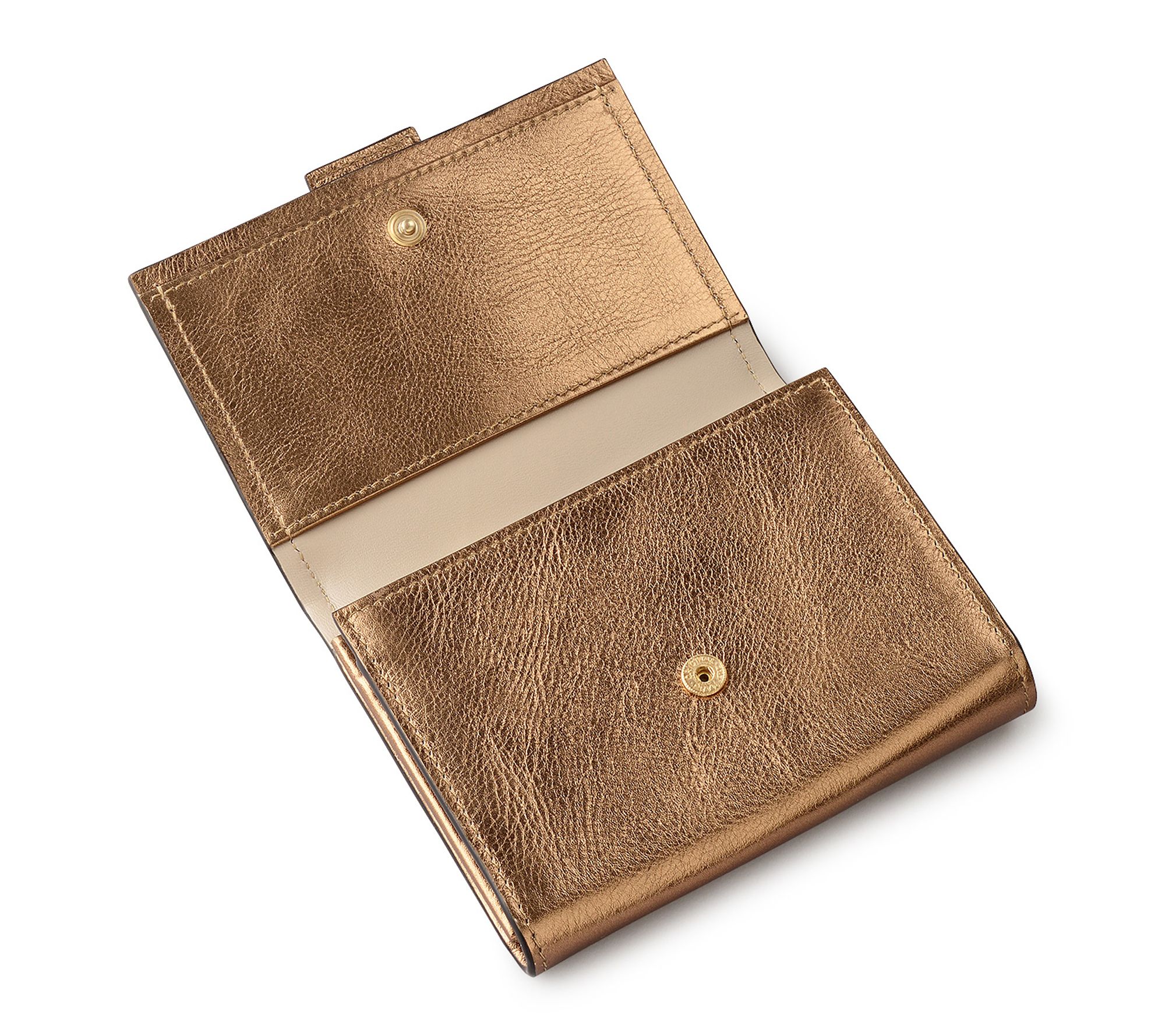 Stay organized on the go with this medium leather wallet, designed for effortless style and everyday convenience. The soft grain metallic finish, padded trim, and layered flap edge add a modern touch, while multiple pockets keep your essentials neatly in place. From Radley.