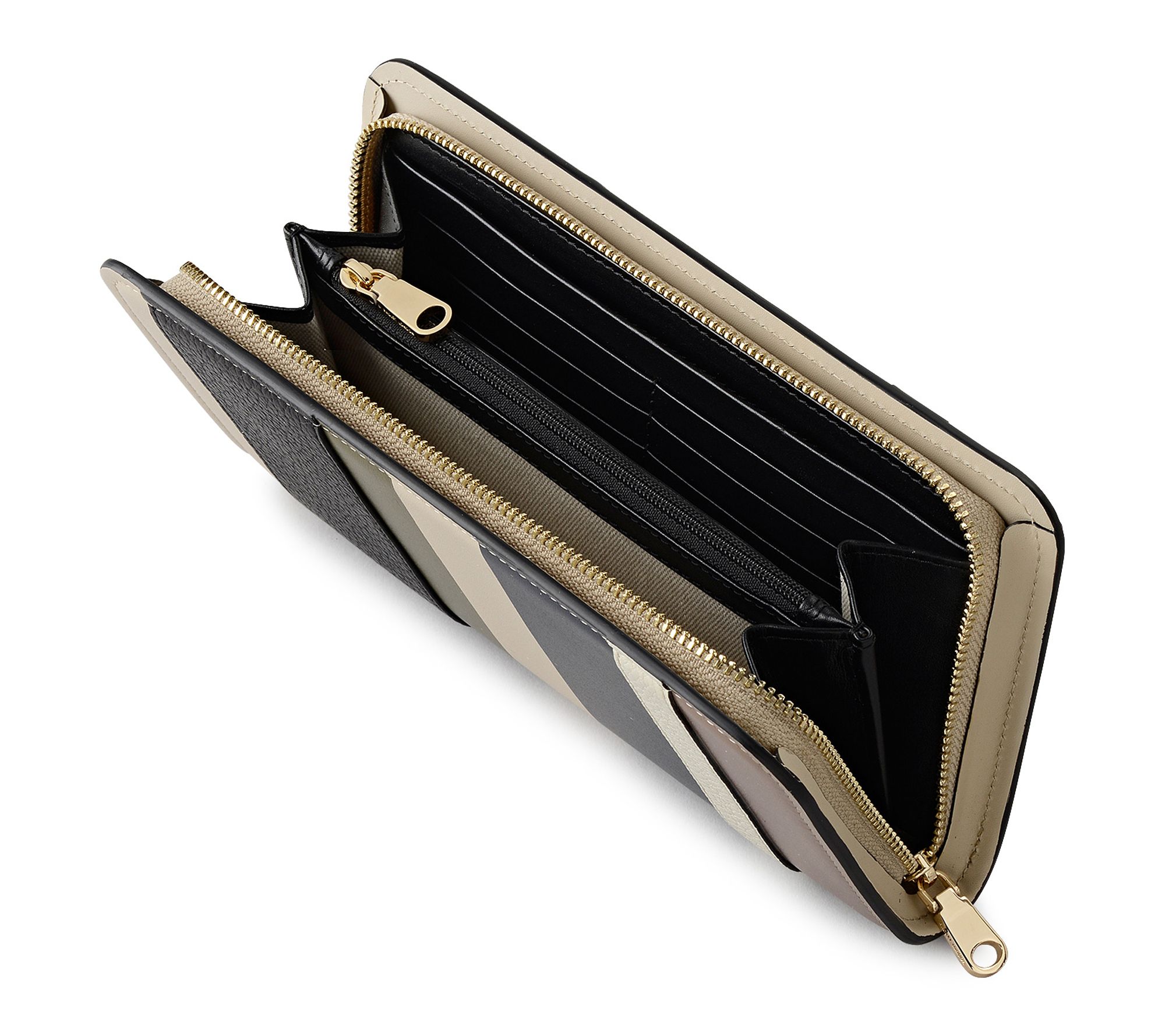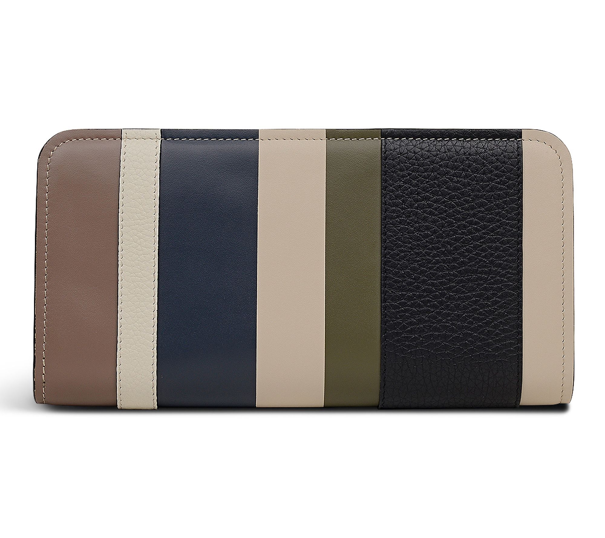 Let the Stripe Lane large zip-around wallet keep your essentials in order, whether you're out for errands or heading to brunch with friends. Smooth and grain leathers, artfully combined in an appliqued stripe pattern, offer a dash of style and dependable organization with multiple card slots and compartments. From Radley.