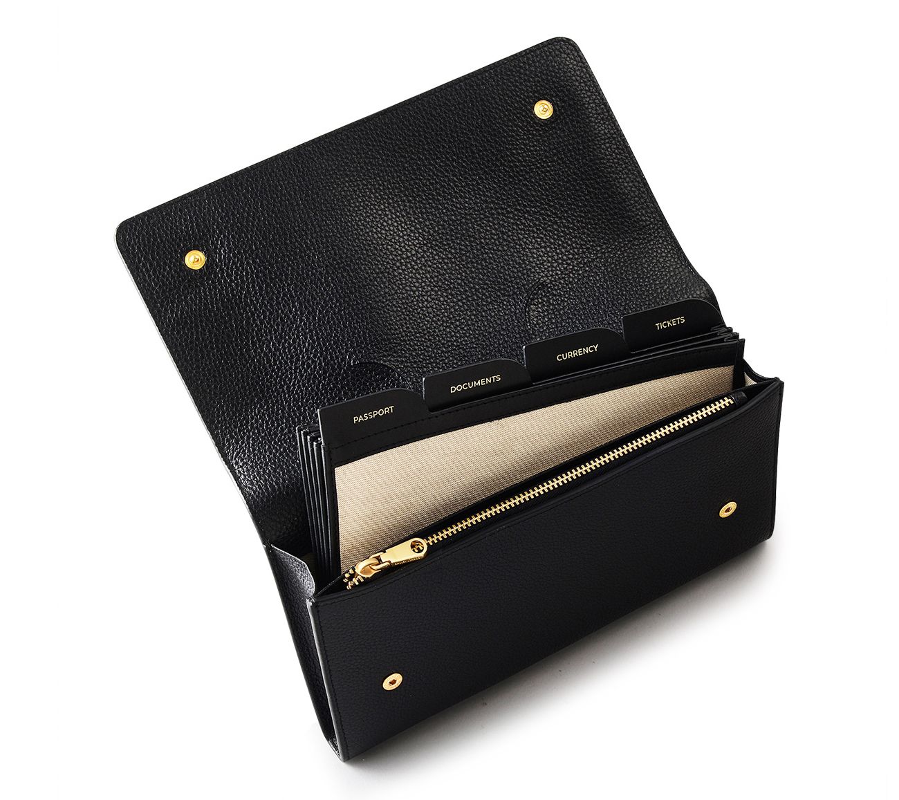 • Three card slots, interior zipped pocket, pen slot, removable section with labelled slots