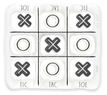 • Includes tic-tac-toe game layout, five Xs, and five Os