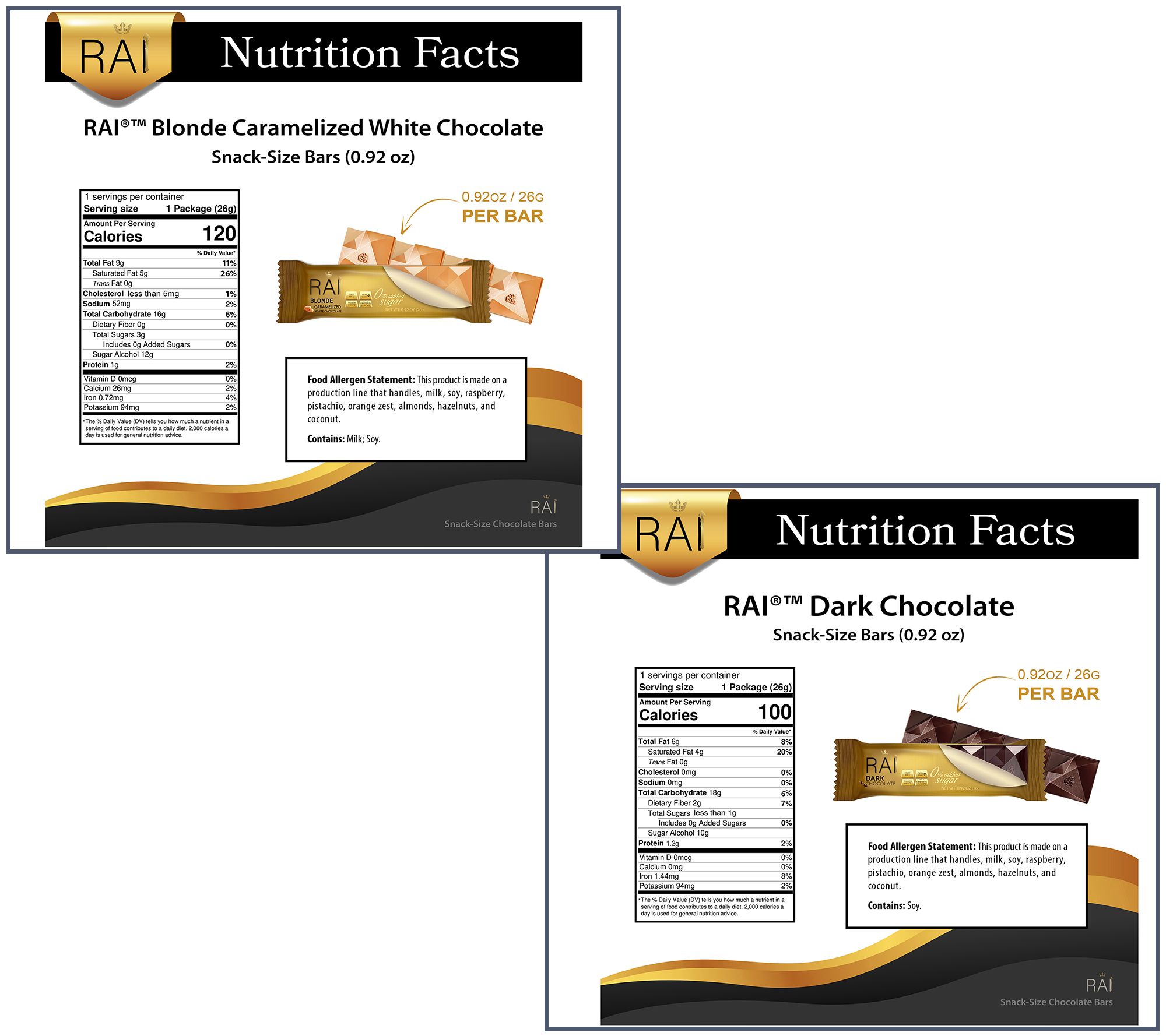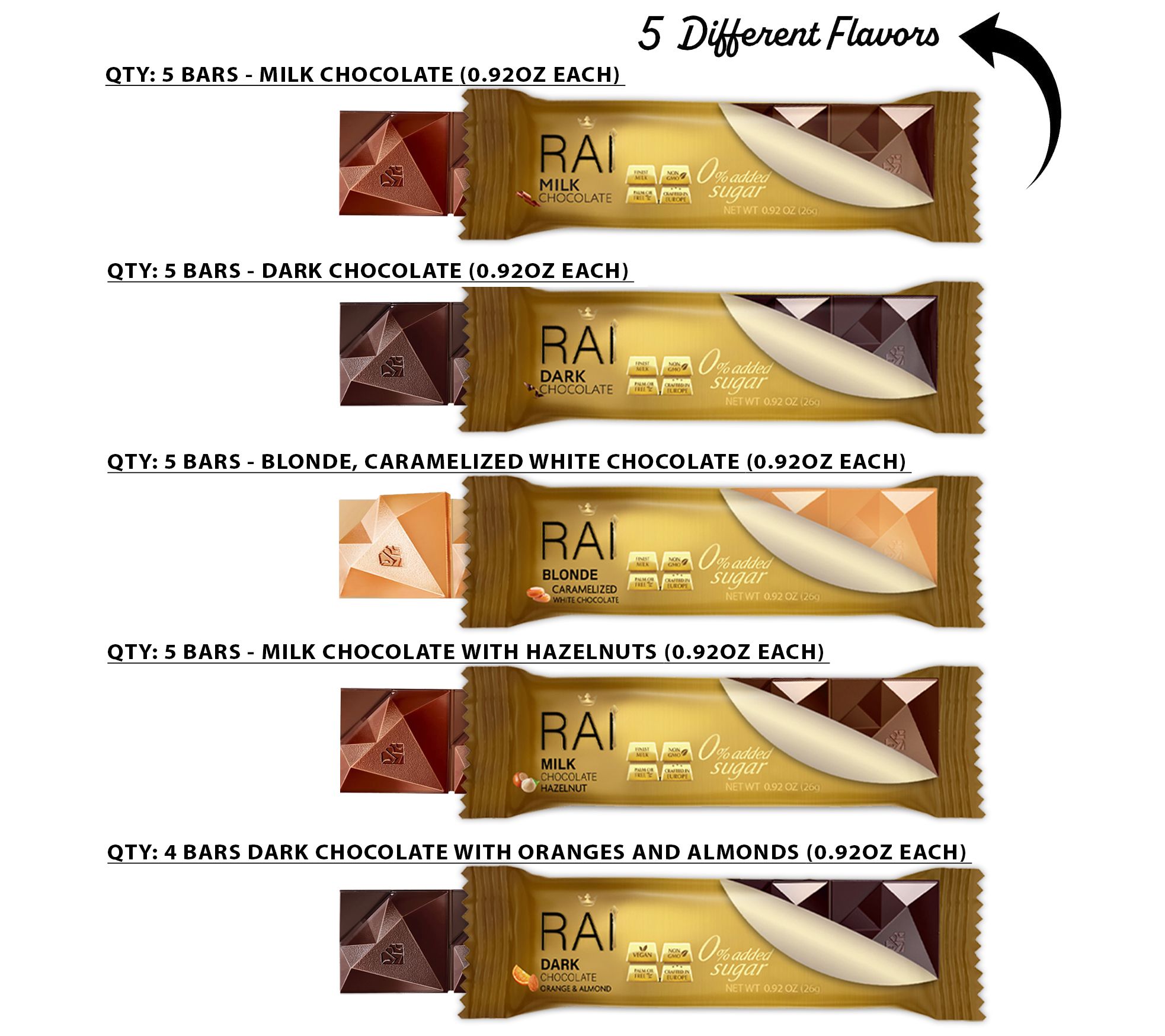 Time for a sweet treat? Don't just reach for any chocolate -- make it RAI chocolate! Give your indulgence an upgrade with these rich, velvety European-crafted chocolate bars. Individually wrapped so you can savor a sweet pick-me-up wherever you are -- they make every day a little more delicious. From RAI.