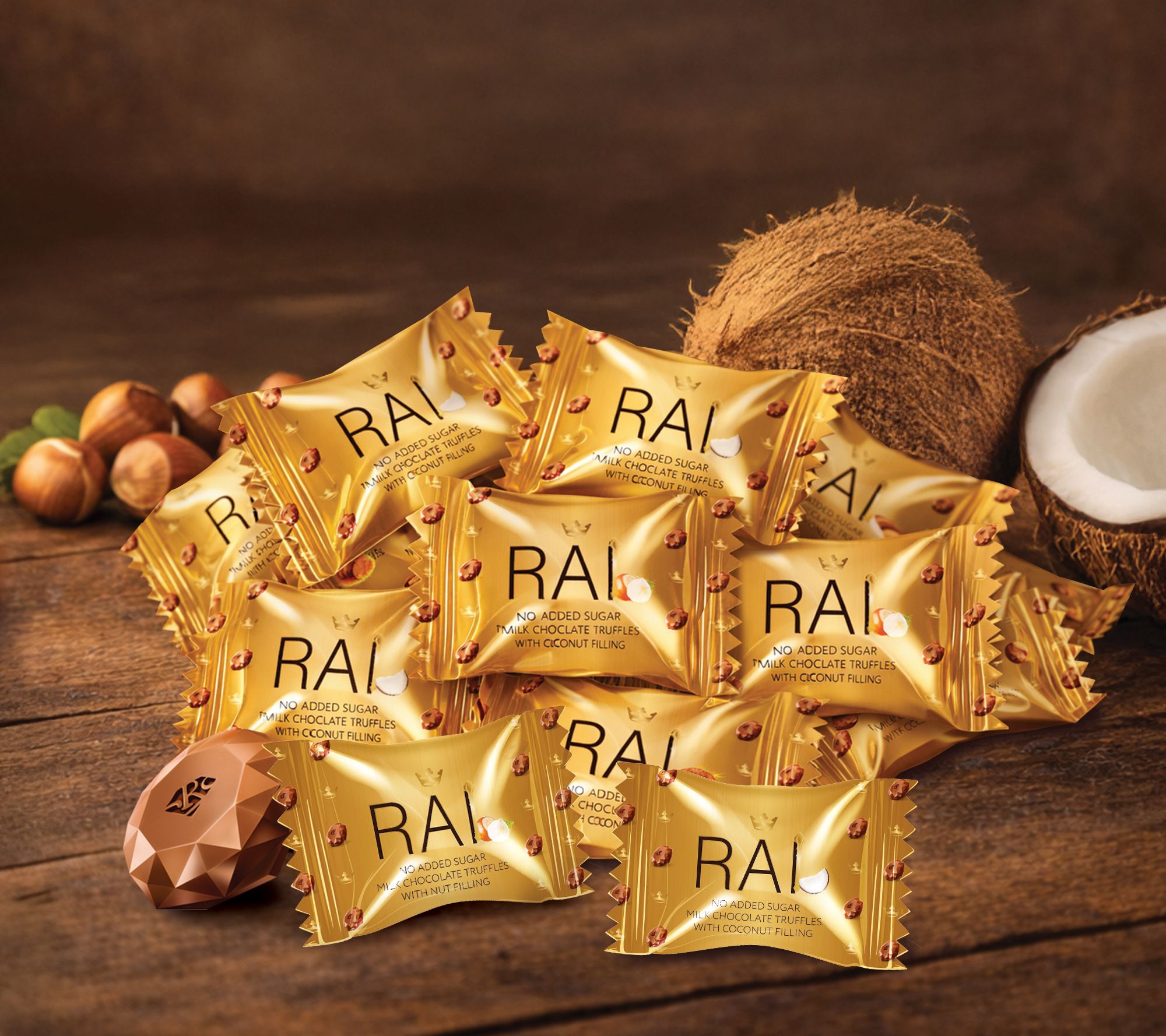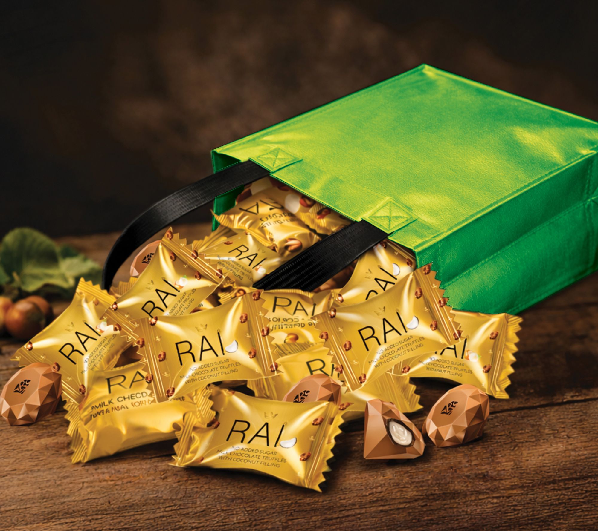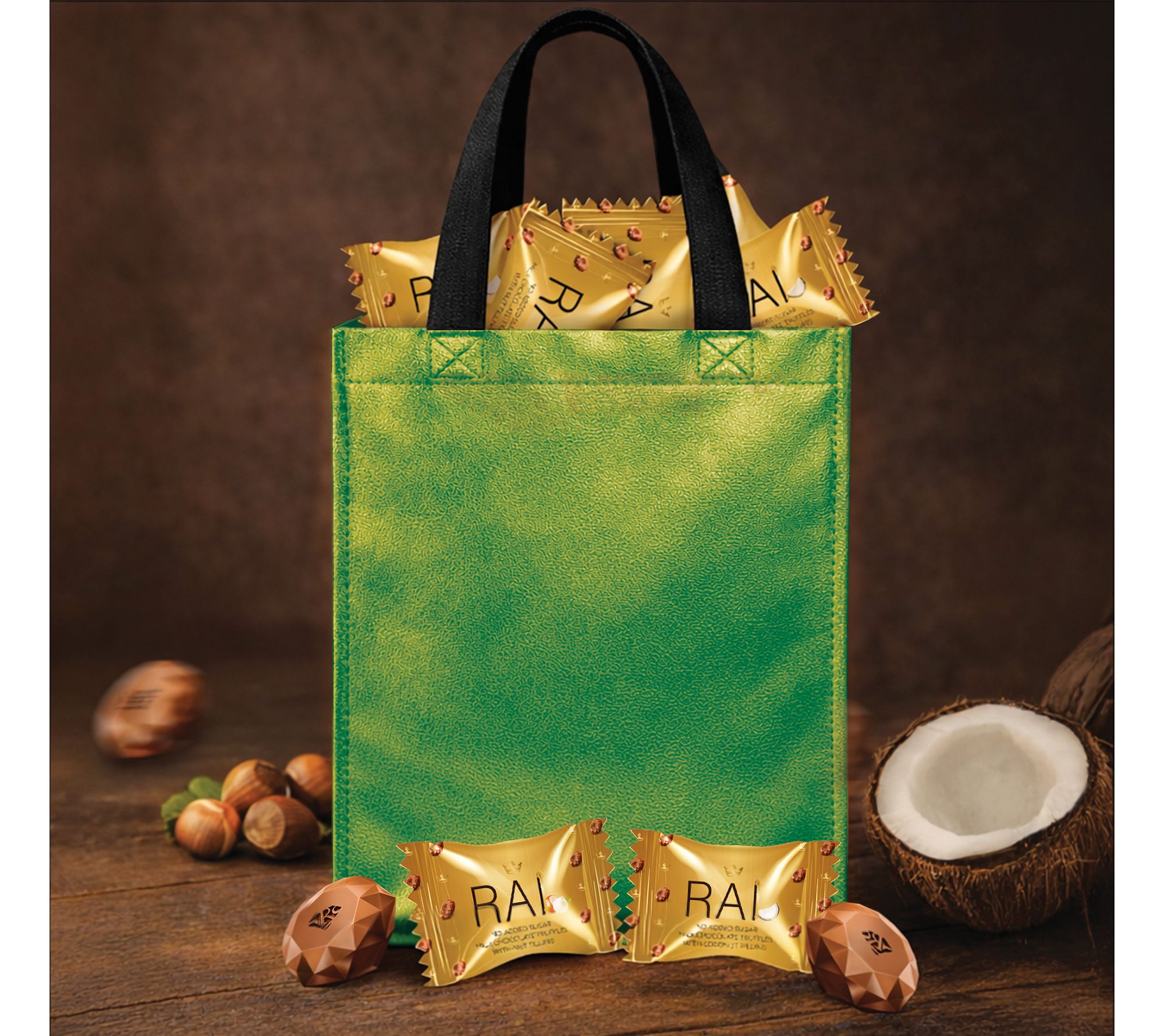 Chocolate truffles become a festive delight with this assortment of milk chocolate diamond truffles, offering a playful balance of nut and coconut-filled centers under silky chocolate. Gift this beautiful bag to brighten celebrations or enjoy each melt-in-your-mouth bite as a sweet moment all to yourself. From RAI.