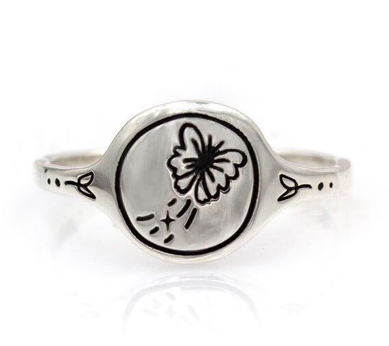 rain and bow Butterfly Signet Ring, Sterling Silver