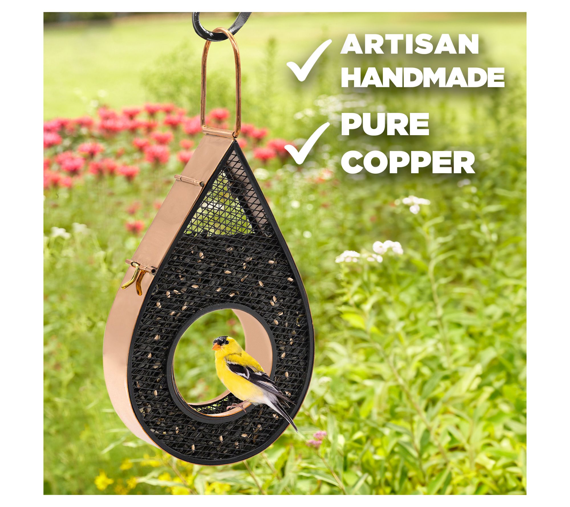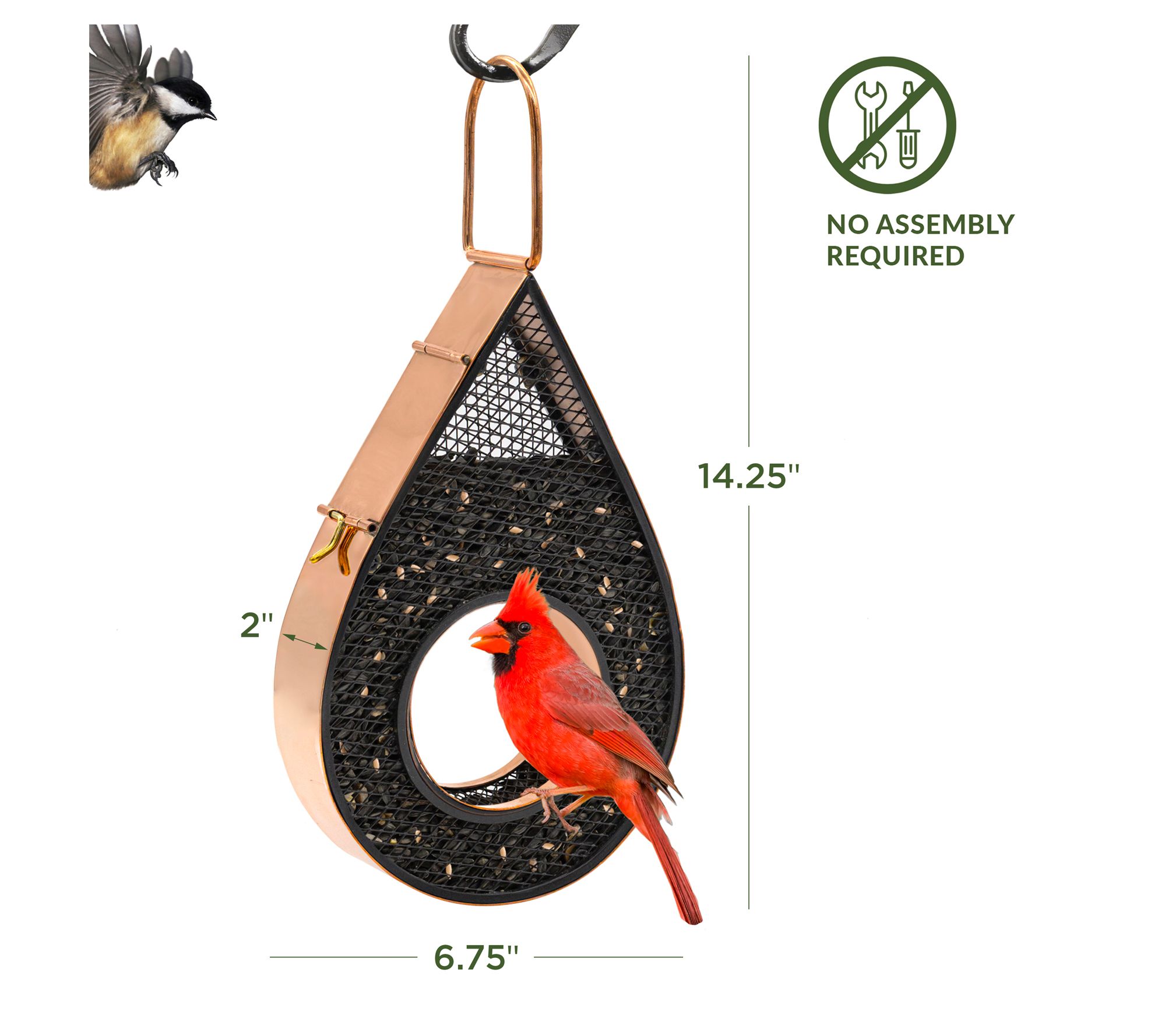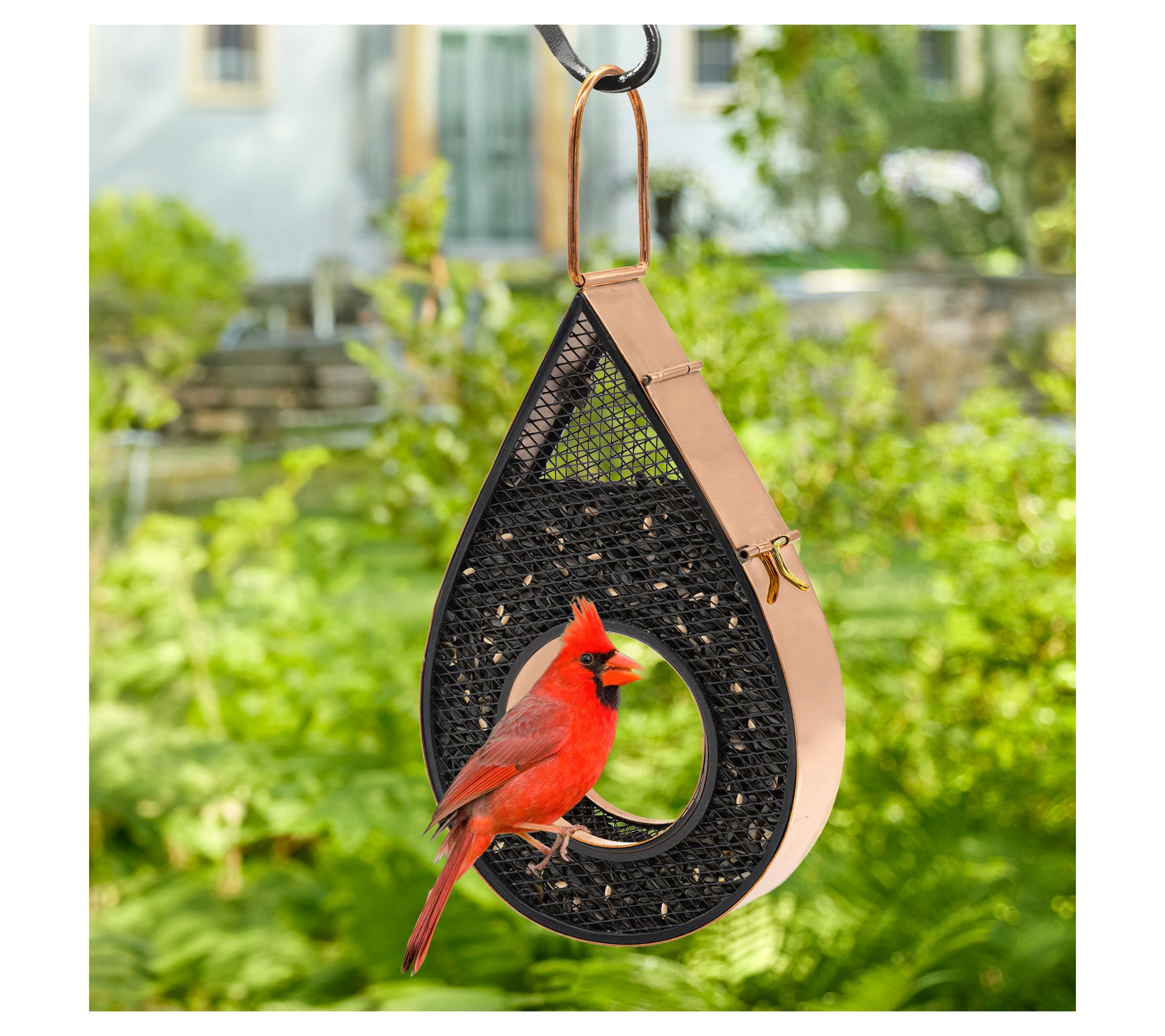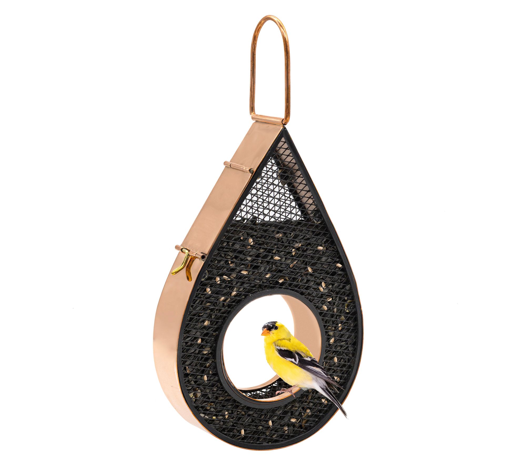 Watch as the birds in your yard delight in flying through and dining at this raindrop bird feeder. The stylish copper finish adds a touch of elegance, while the heavy-duty plexiglass design allows for ample seed storage, reducing the need for frequent refills. With its easy-fill panel, you can easily keep the feeder stocked, making your outdoor space both peaceful and inviting. From Good Directions.