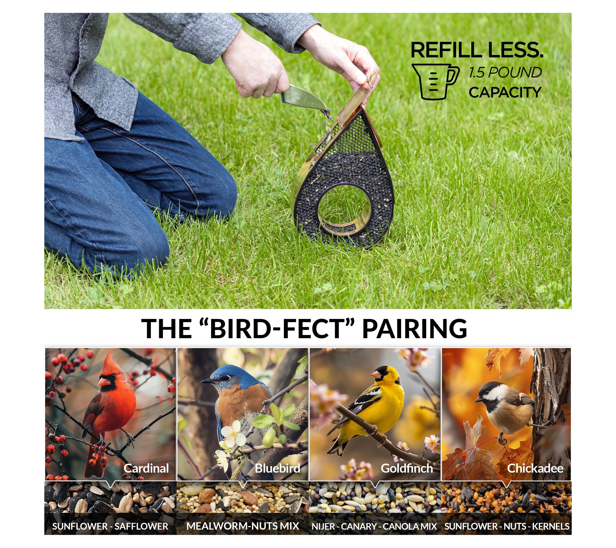 • Holds approximately 3 lbs of seed, not included