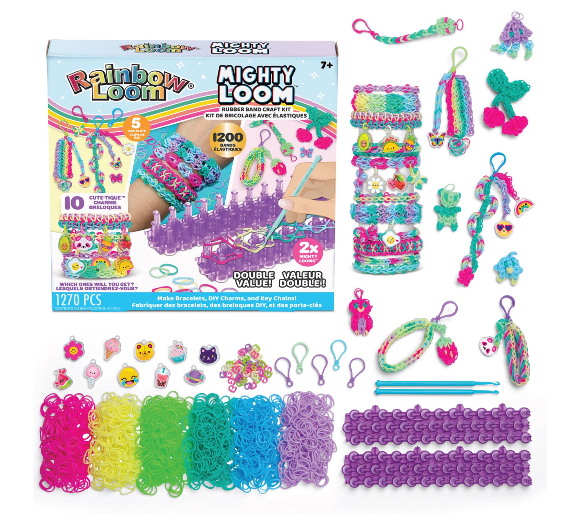 Crafting time gets bigger and bolder with this rubber band bracelet making kit, designed to let creativity shine. Adjustable mighty looms make it easy to tackle bracelets, necklaces, charms, or key chains, and the included charms and colorful bands add extra flair to every project. It's a fun way to spend time together while making custom accessories that reflect your style. From Rainbow Loom.