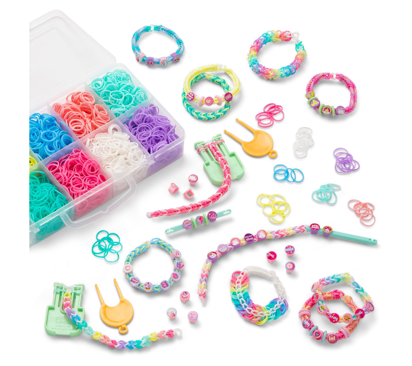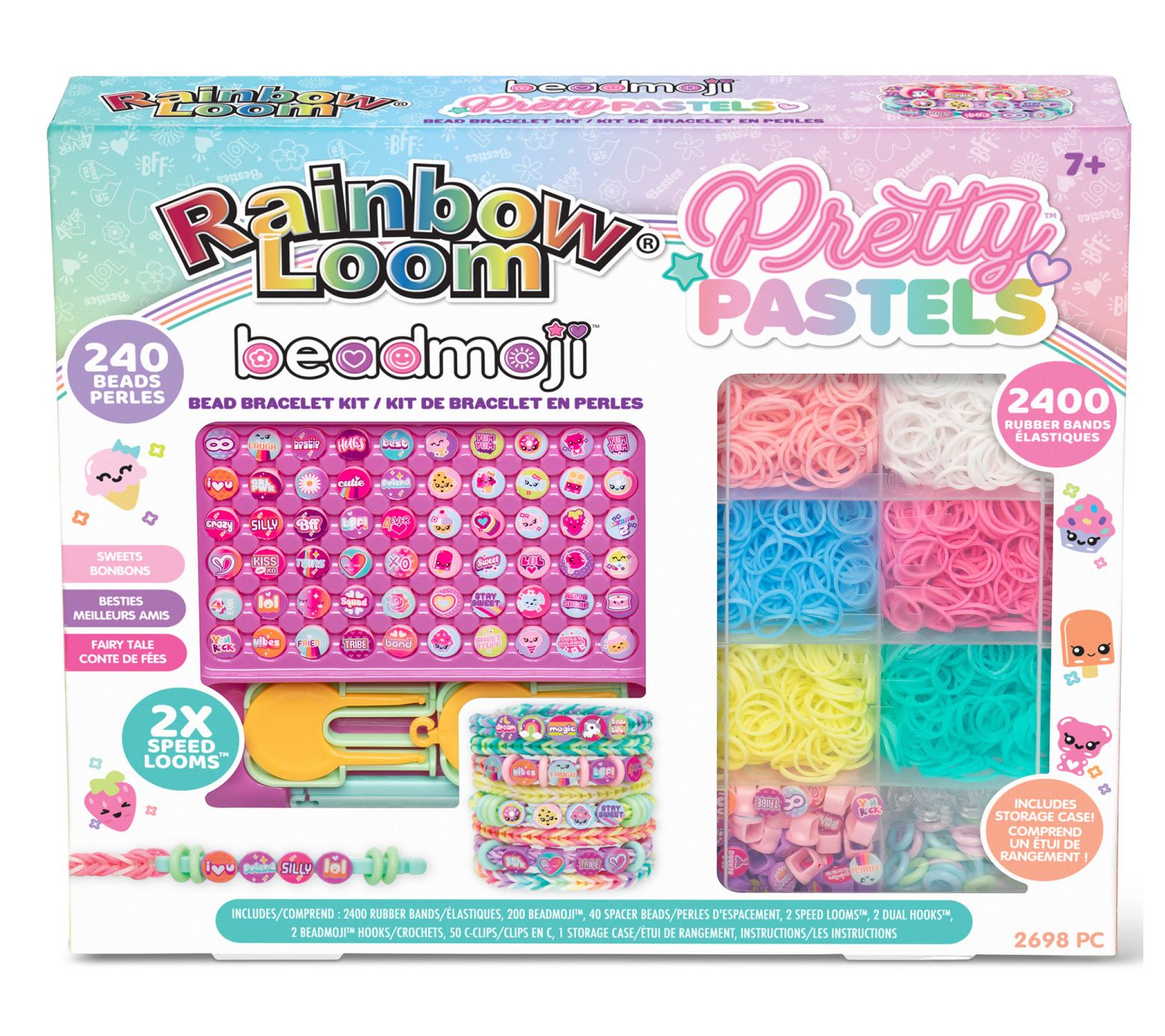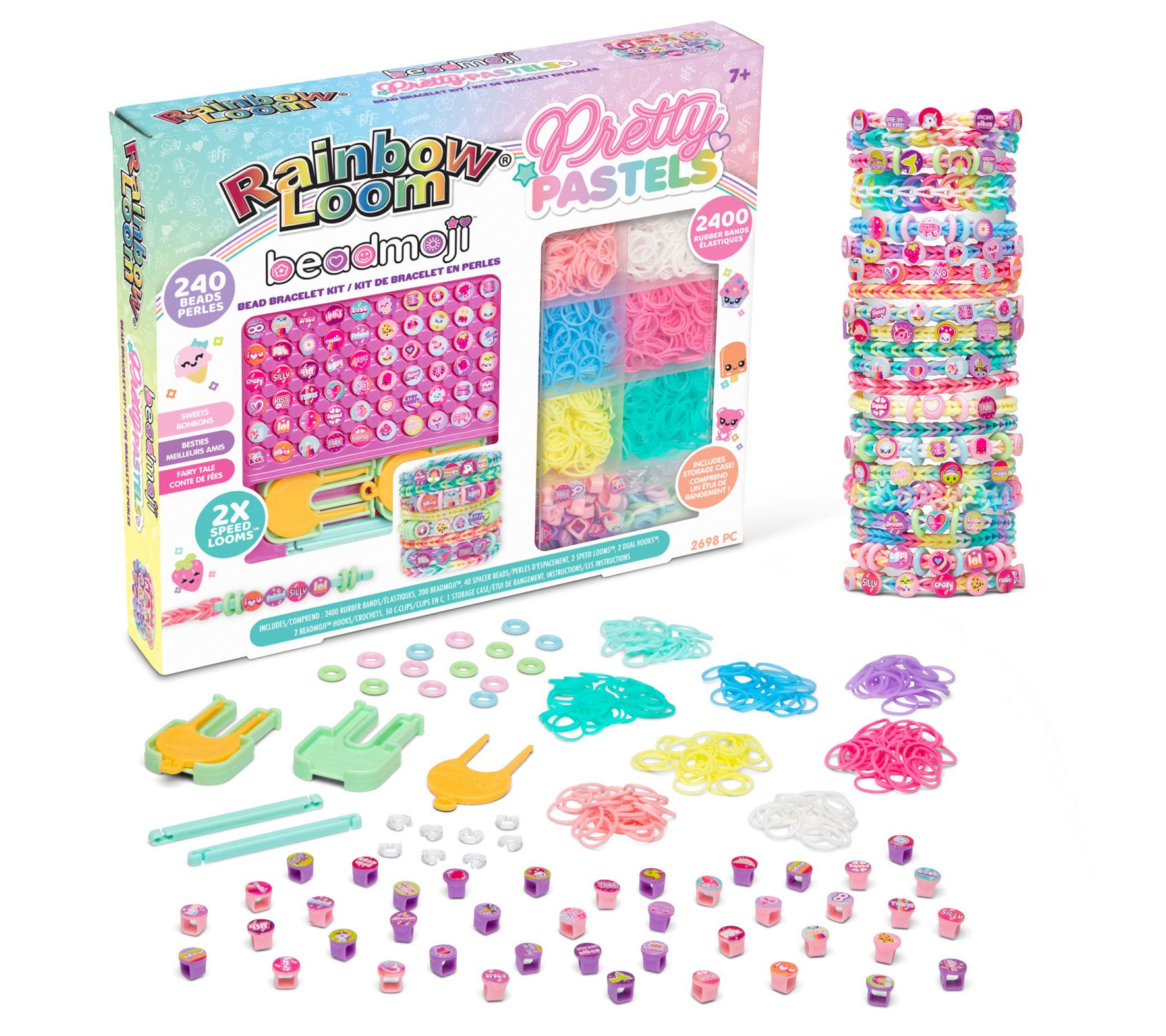 • Includes 2400 rubber bands, 200 Beadmoji beads, 40 spacer beads, two speed looms, two dual hooks, two Beadmoji hooks, 50 c-clips