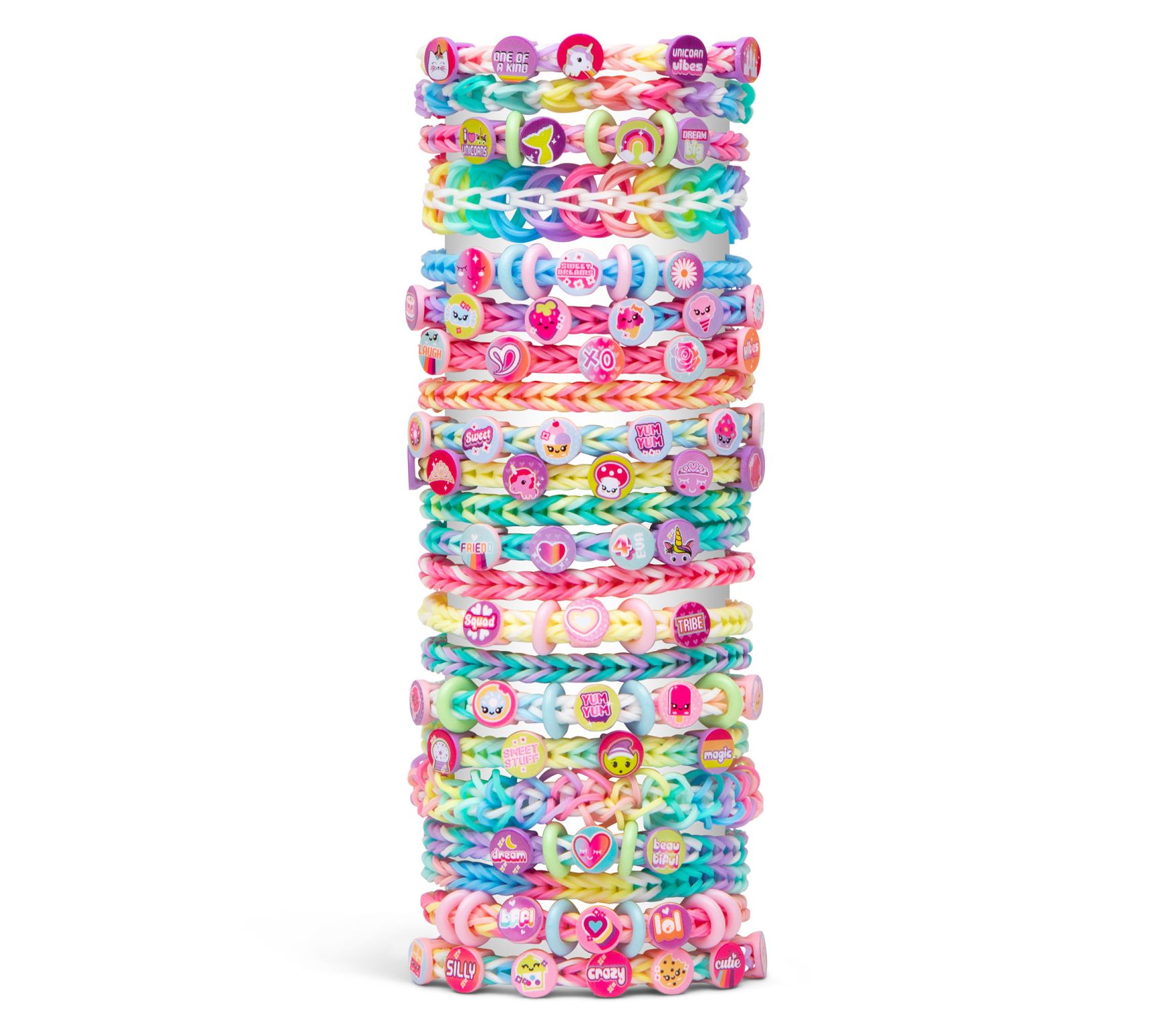 Bring friends together for hours of creative fun with this bead bracelet kit, packed with pastel bands, message beads, and two speed looms to make crafting twice as fast. Add a personalized touch to every accessory and share unique designs at sleepovers, birthday parties, or rainy-day hangouts. Express your style in vibrant color while building skills and confidence. From Rainbow Loom.