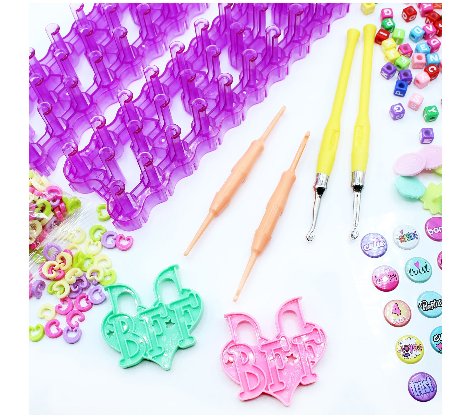 Craft colorful, wearable creations with this fun BFF Mega bracelet making kit, featuring a rainbow of stretchy bands, beads, and everything your little artist needs to get started on a creative journey. From Rainbow Loom.