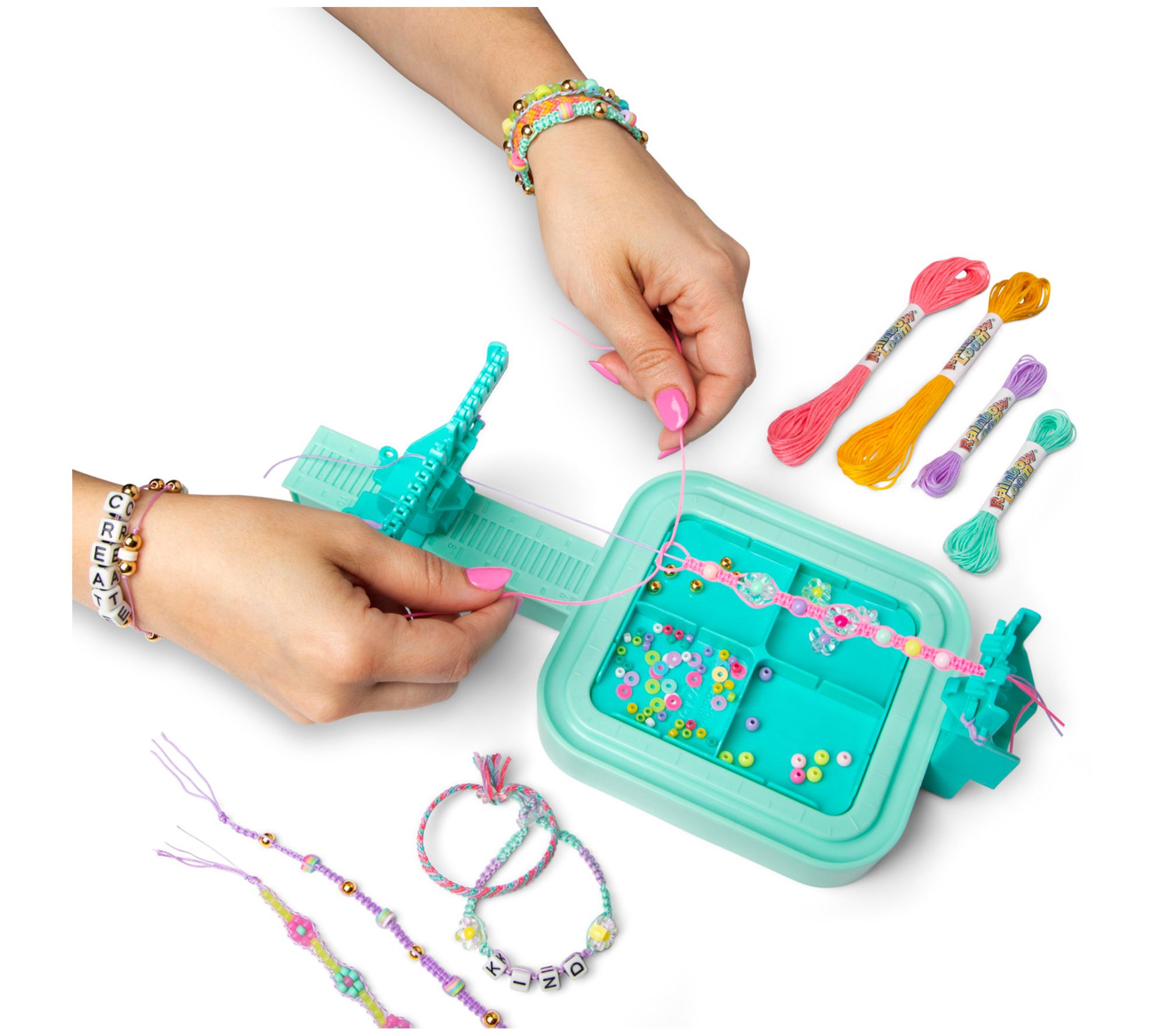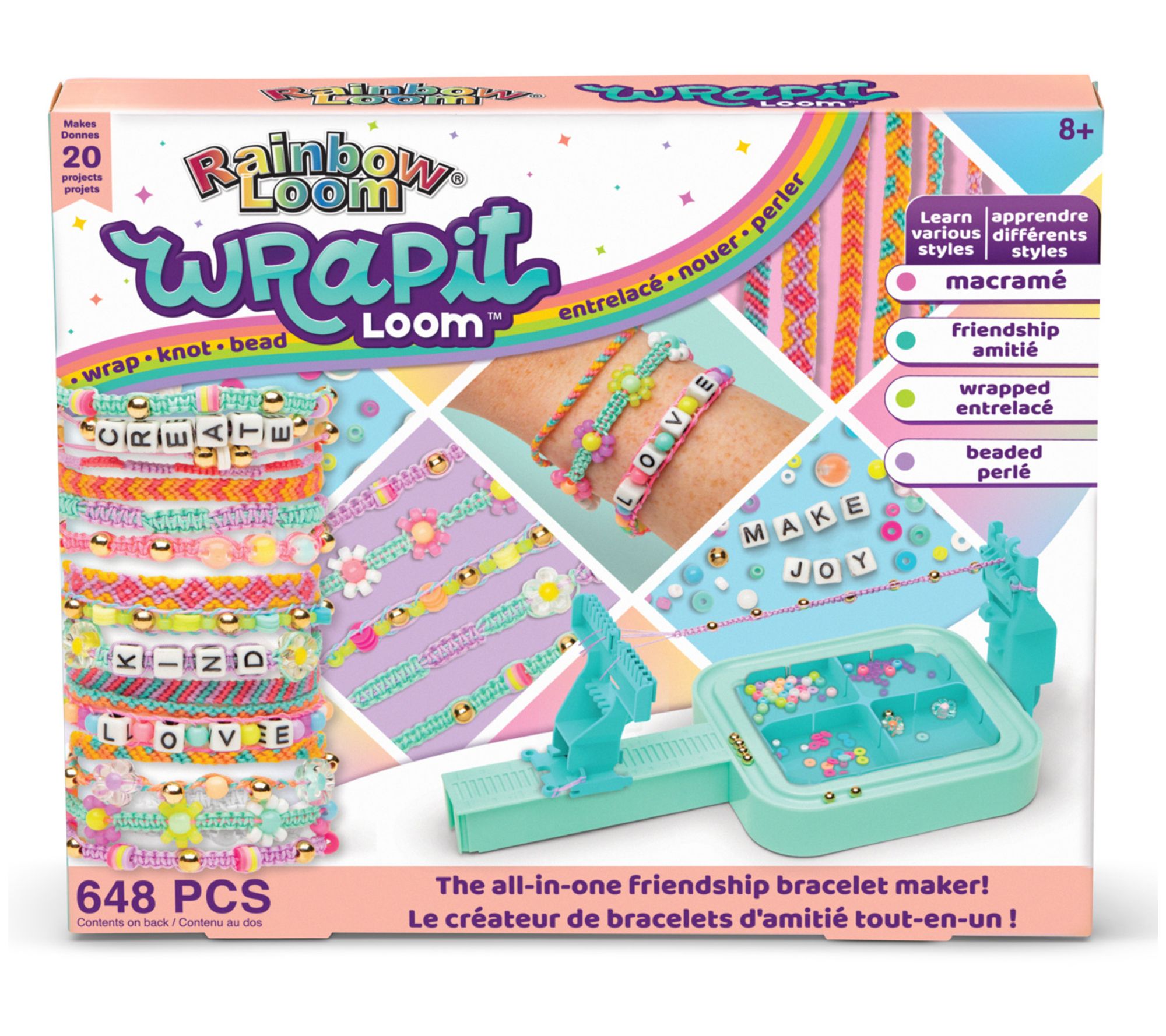 Get ready to unleash your child's creativity with the Rainbow Loom Wrapit Loom Bracelet Maker Set! This all-in-one kit lets them craft stunning macrame, wrapped, friendship, and beaded bracelets. With a variety of colorful threads and an assortment of unique beads, the possibilities are endless. From Rainbow Loom.