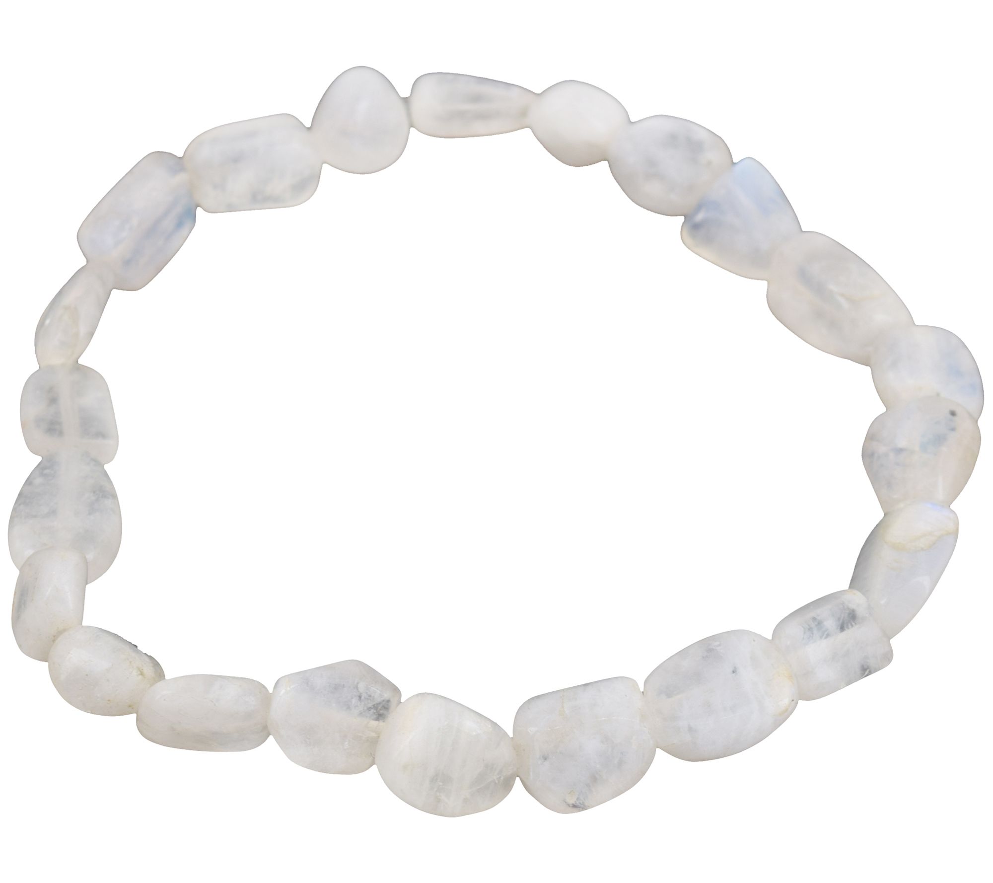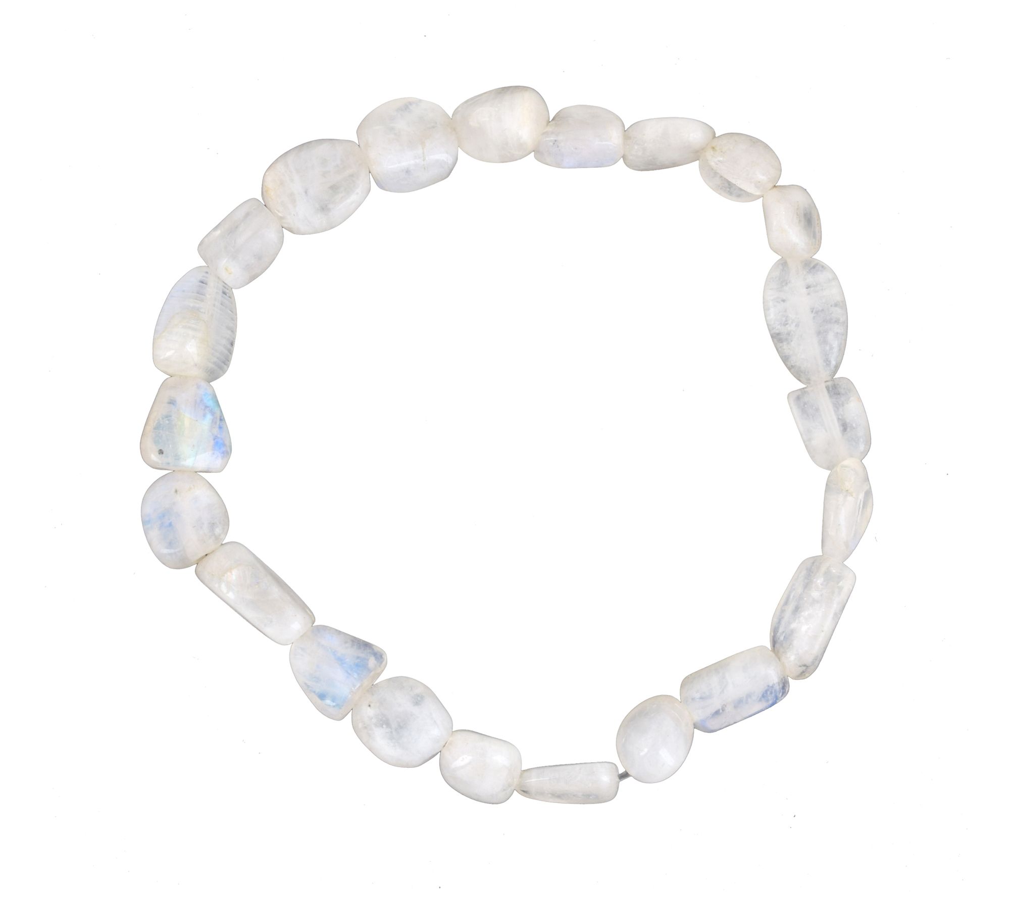 • Stretch bracelet with tumbled, polished rainbow moonstone beads