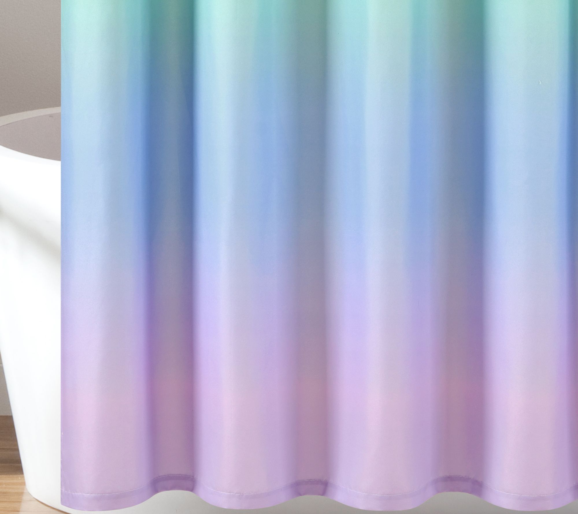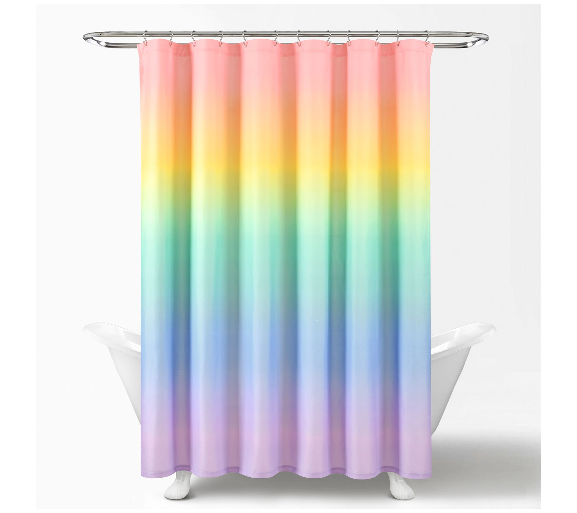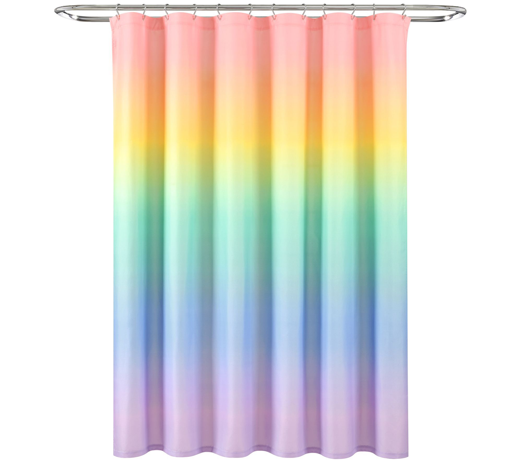 Add a joyful splash of color to the bathroom with this pretty rainbow ombre shower curtain. From Lush Decor.
