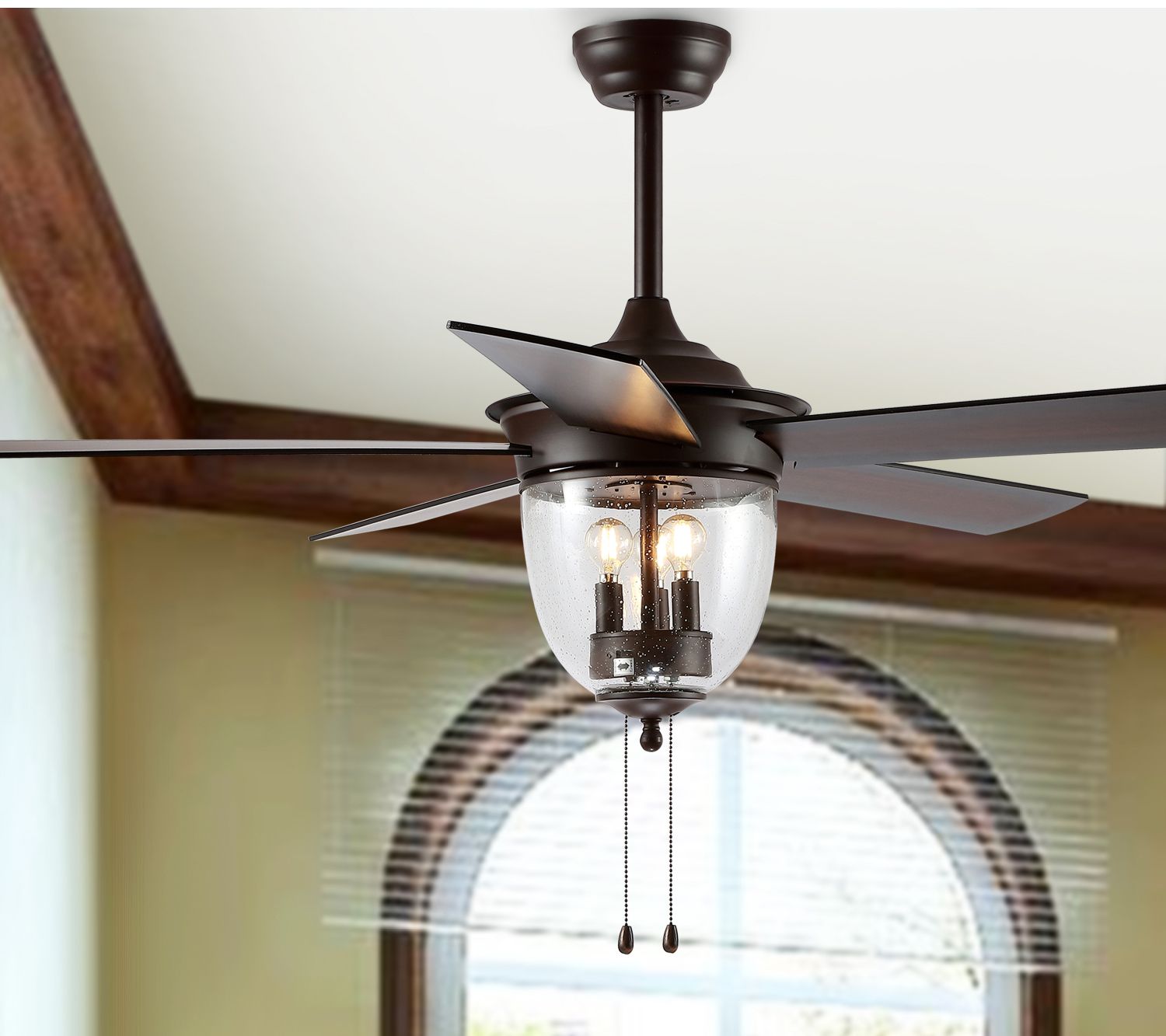 Ideal for a rustic cottage kitchen or den, this ceiling fan provides both light and cool comfort. From Safavieh.