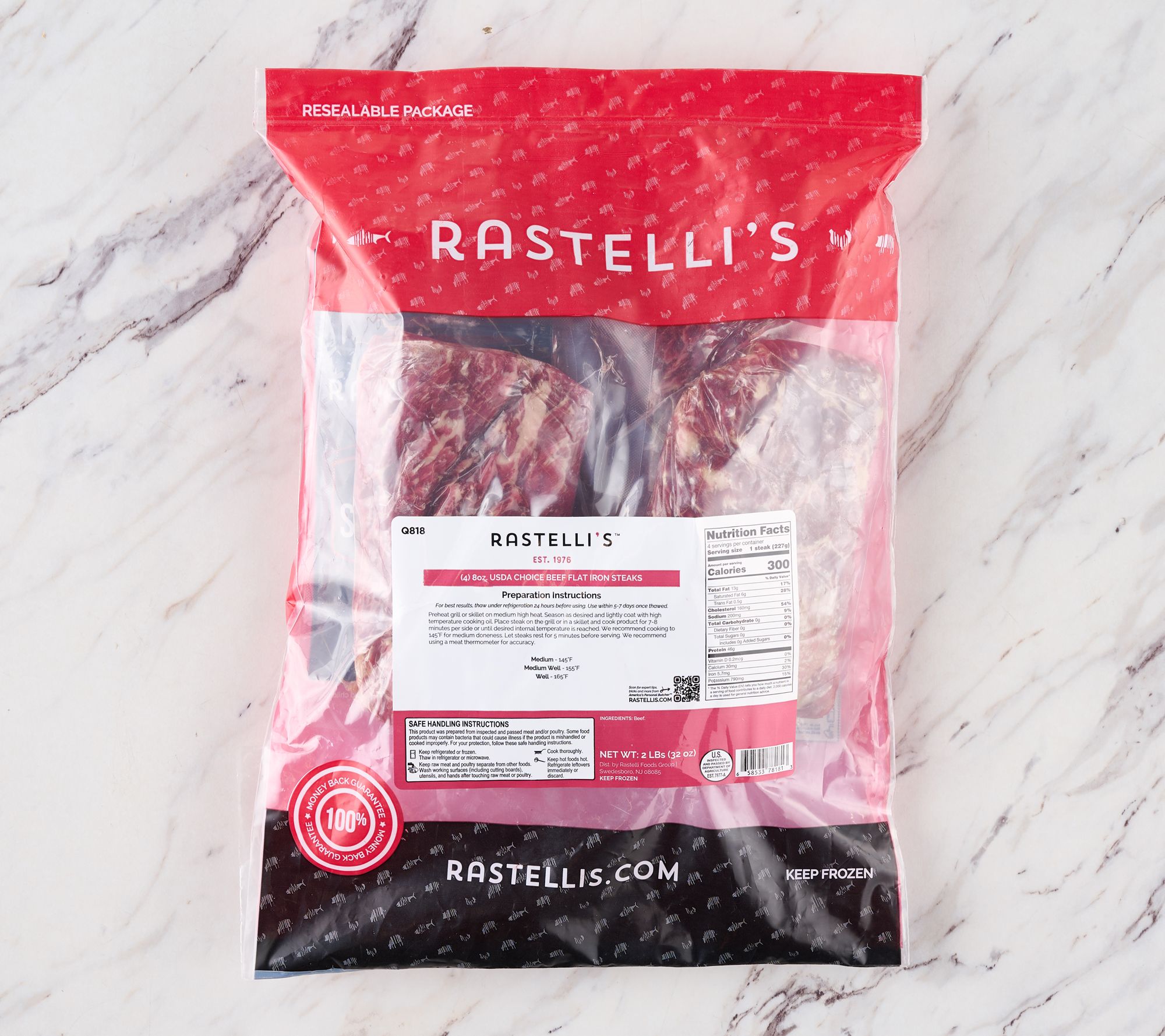 Got a white tablecloth? Restaurant-style dining at home is at your sevice with these Black Angus flat iron steaks, ready to be seared to your ideal doneness. Whether preparing a weeknight dinner or impressing guests, each tender, juicy steak will completely satisfy even the pickiest of carnivores. From Rastelli's.
