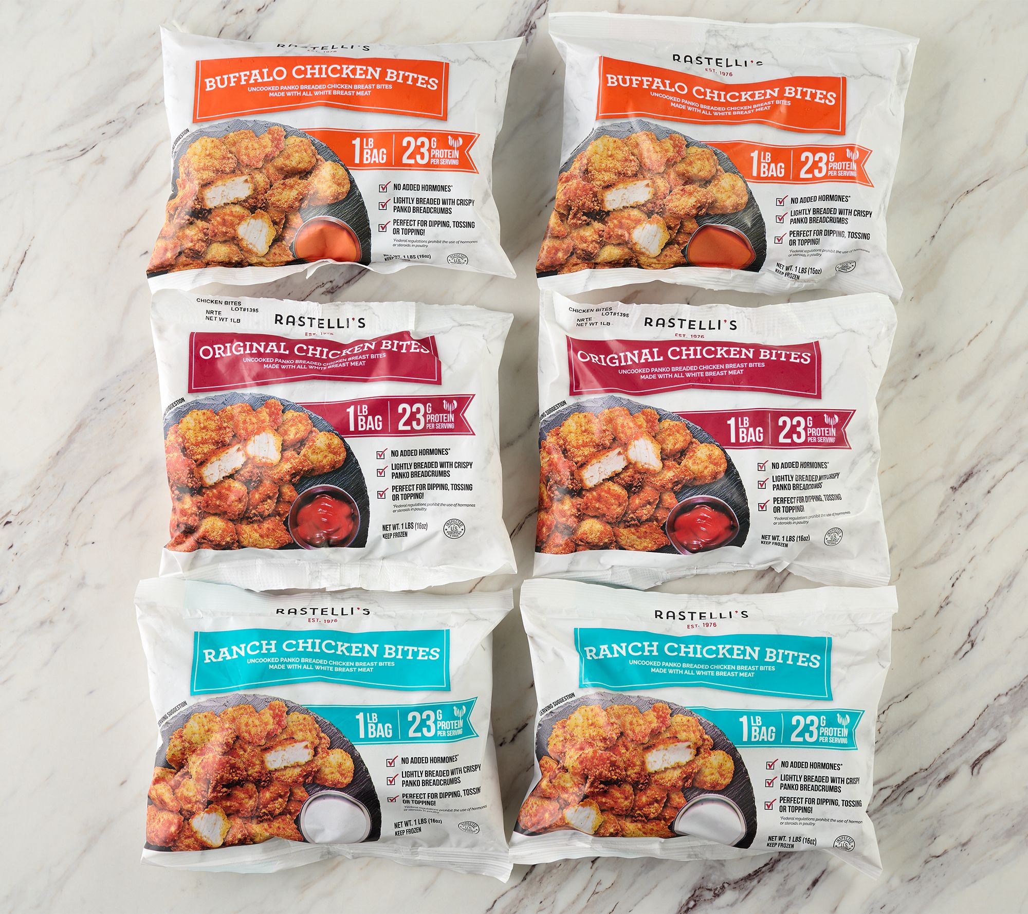 • Includes six 1-lb bags of chicken bites