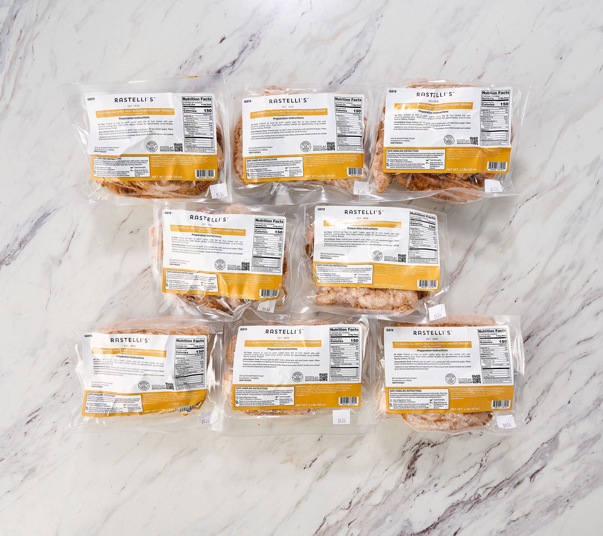 Includes eight 1-lb bags of white meat blackened chicken tenders