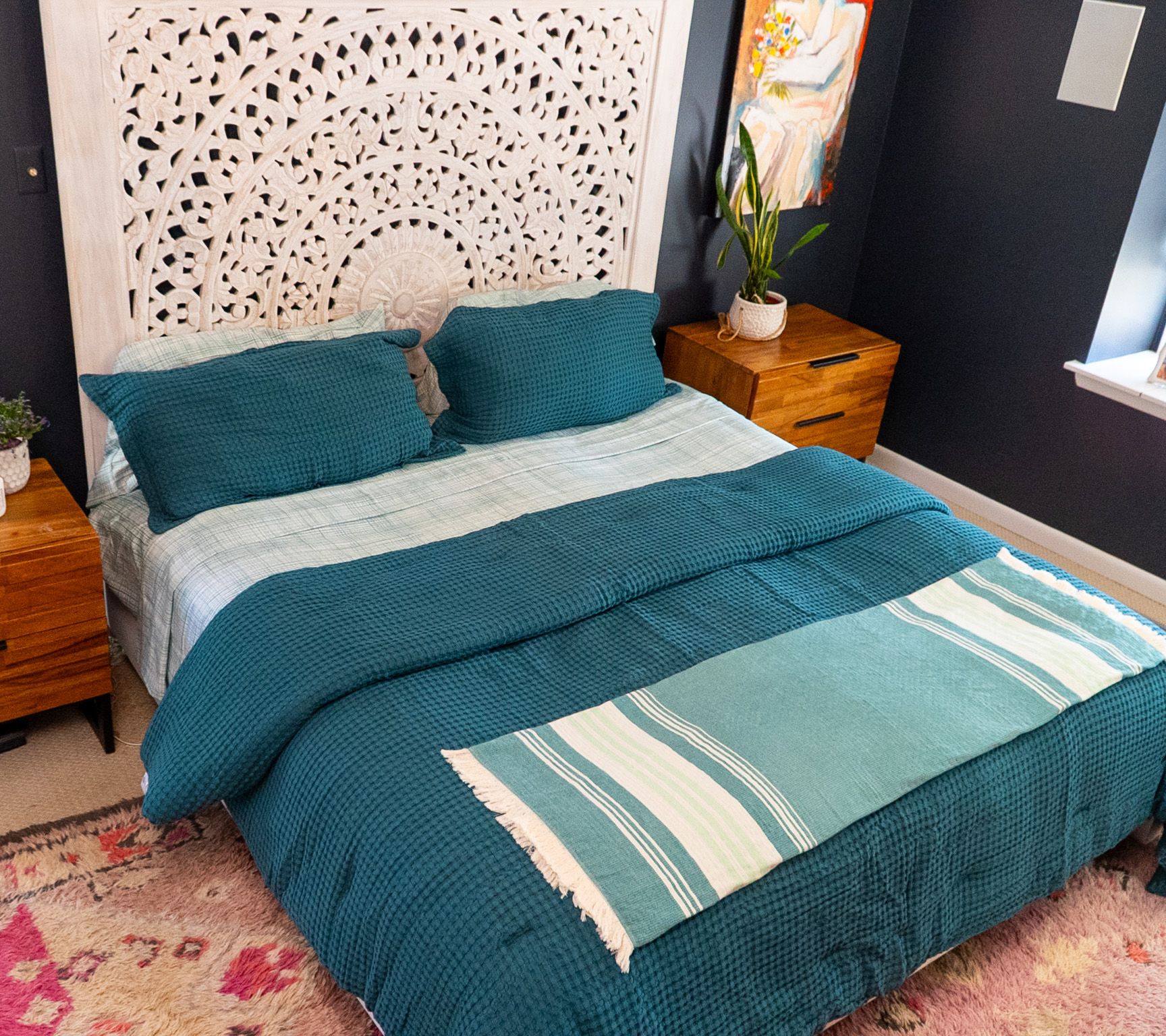 Includes fitted flat sheet, fitted sheet, and four pillowcases (two for Twin and Twin XL)