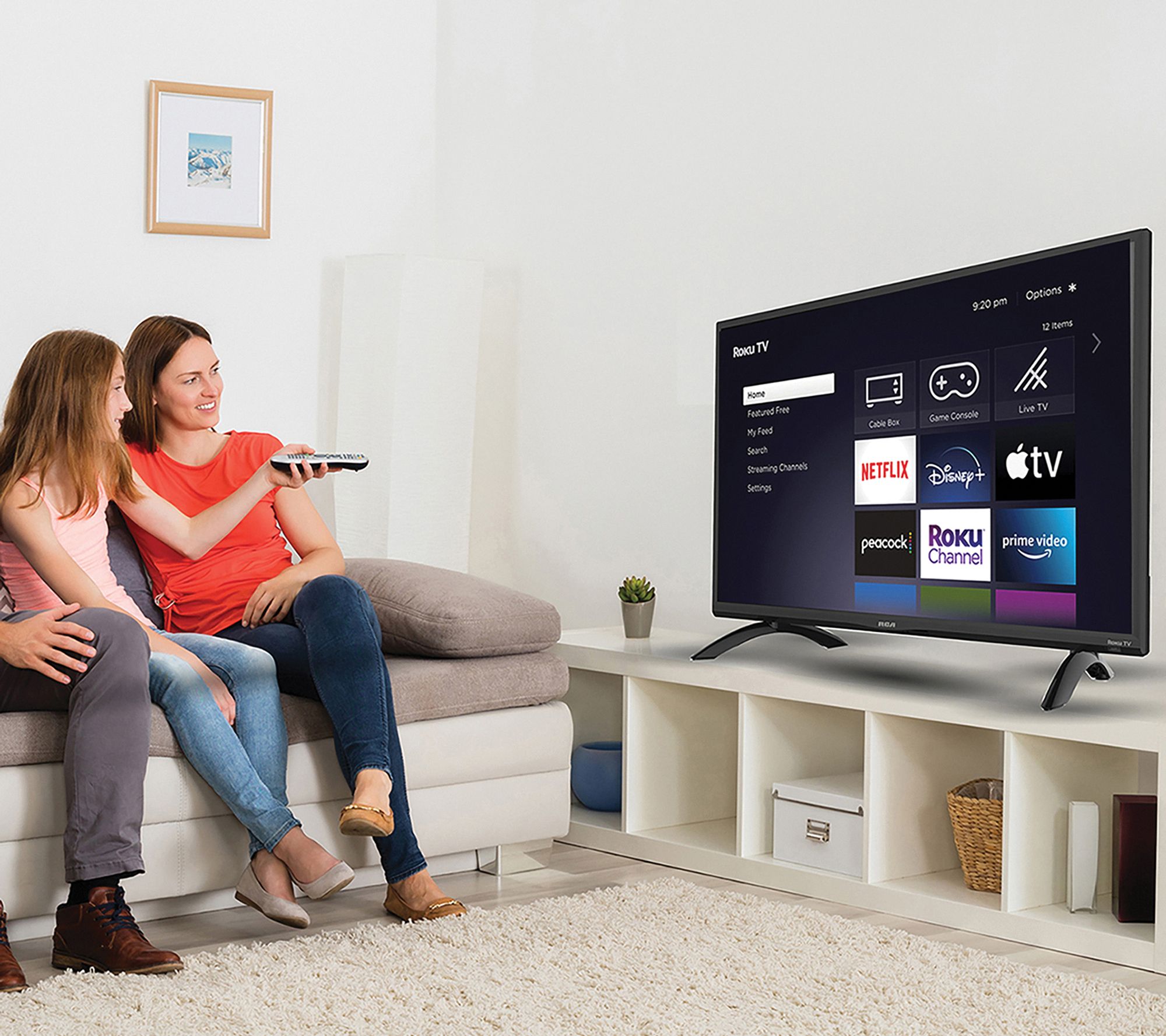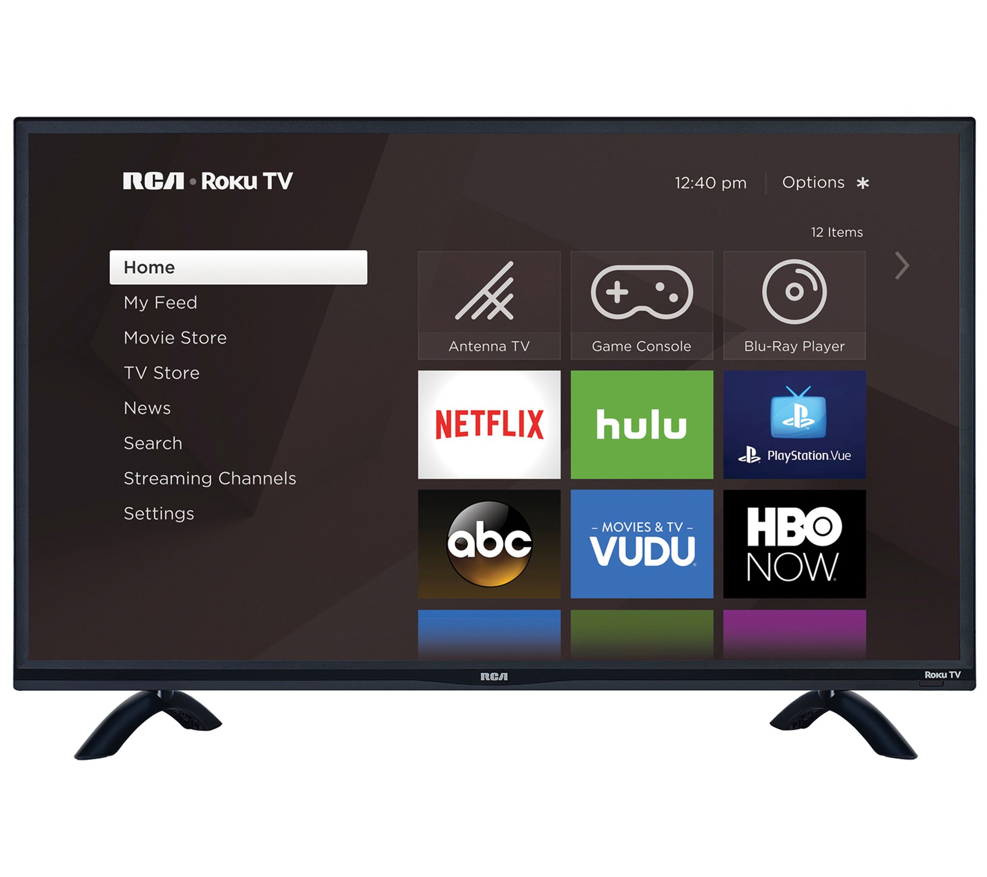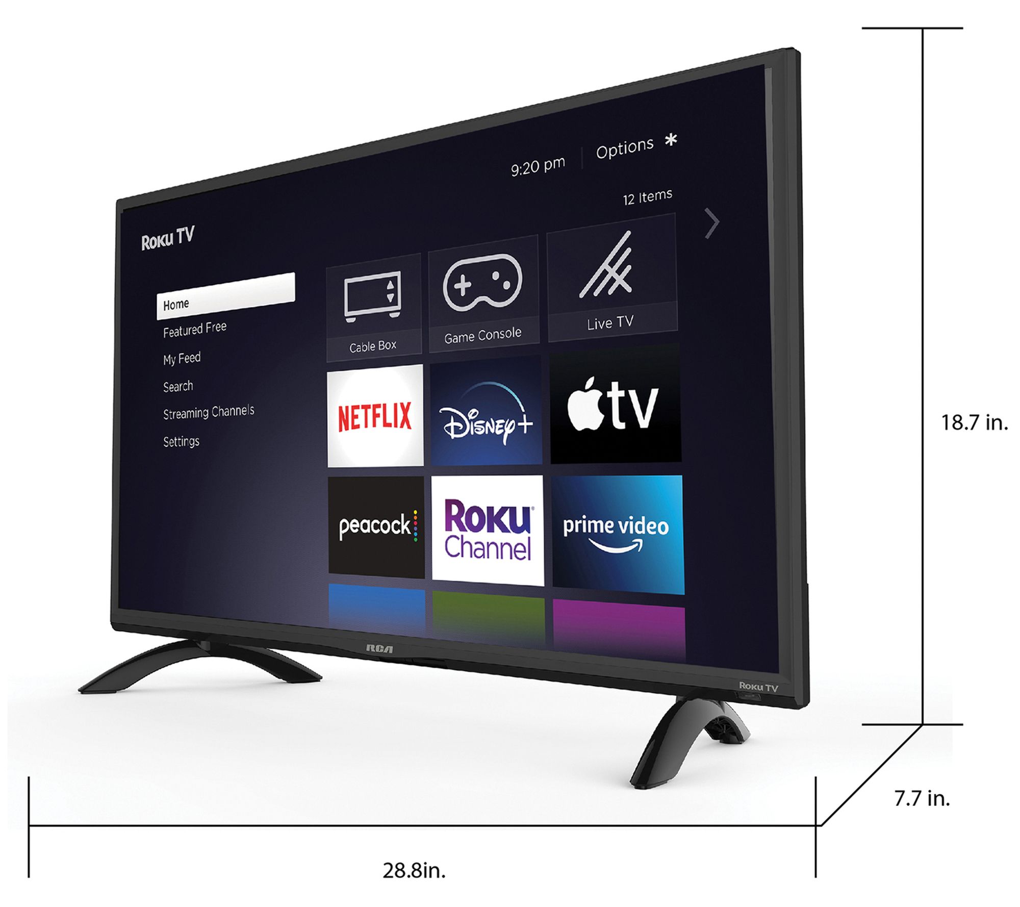 At 32" diagonal, the RTR3260 Smart TV is ideally sized for a basement, bedroom, or office. With built-in Wi-Fi and Roku's Smart TV interface, you can instantly watch your favorite before-bed shows or stream music to make the work day more productive. From RCA.
