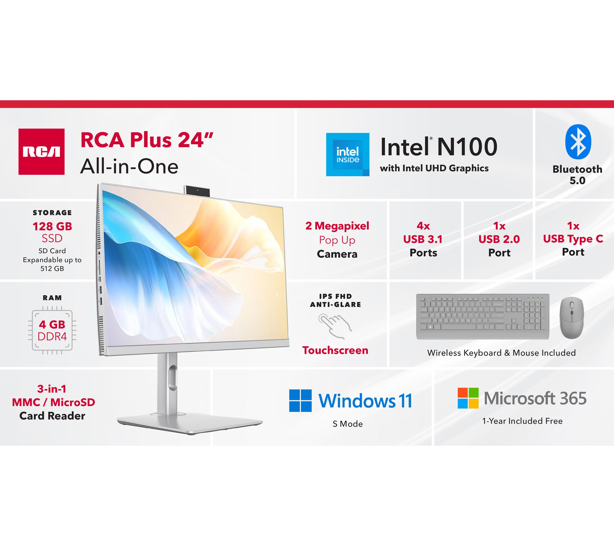 Time for a tech upgrade? This RCA all-in-one desktop helps you accomplish your day-to-day tasks and your personal passion project with efficient ease -- in a sleek space-saving design that works well in smaller spaces. Get started right away with the included wired mouse and keyboard. From RCA.