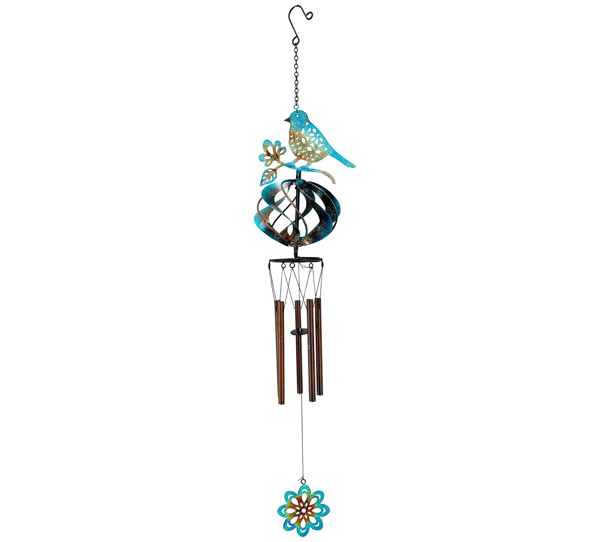 A sweet and whimsical addition to any garden, this Cosmix helix wind spinner chime is adorned with an adorable bird accent for nature-inspired beauty. It comes complete with a swivel S-hook to ensure smooth spinning. From Red Carpet Studios.