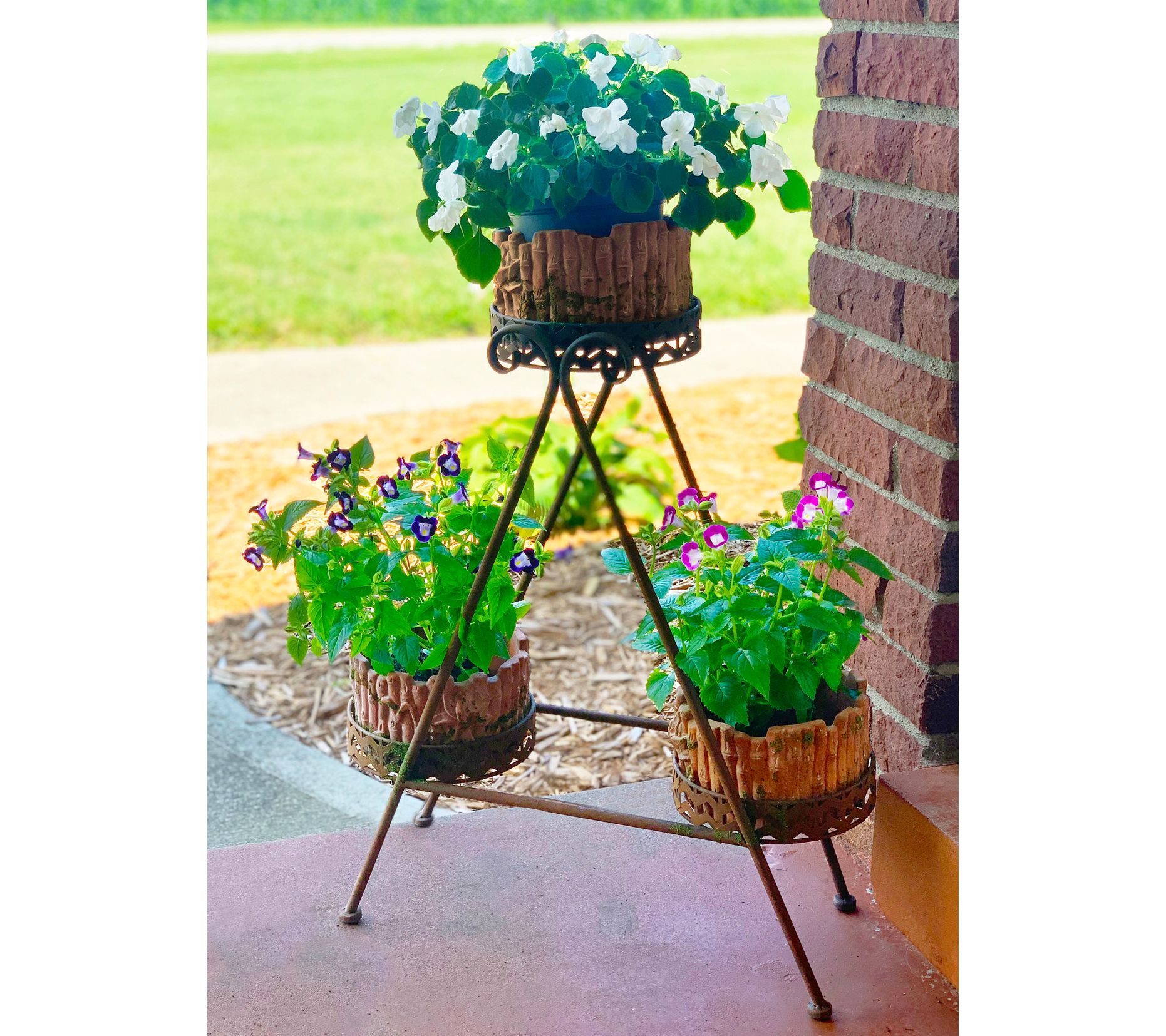Three pots in this unique three-planter stand will be worth three cheers when each is filled with vibrant florals. From Red Carpet Studios.